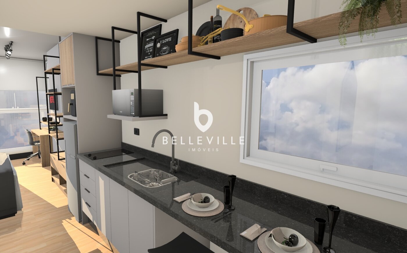 Studio totalmente mobiliado e decorado