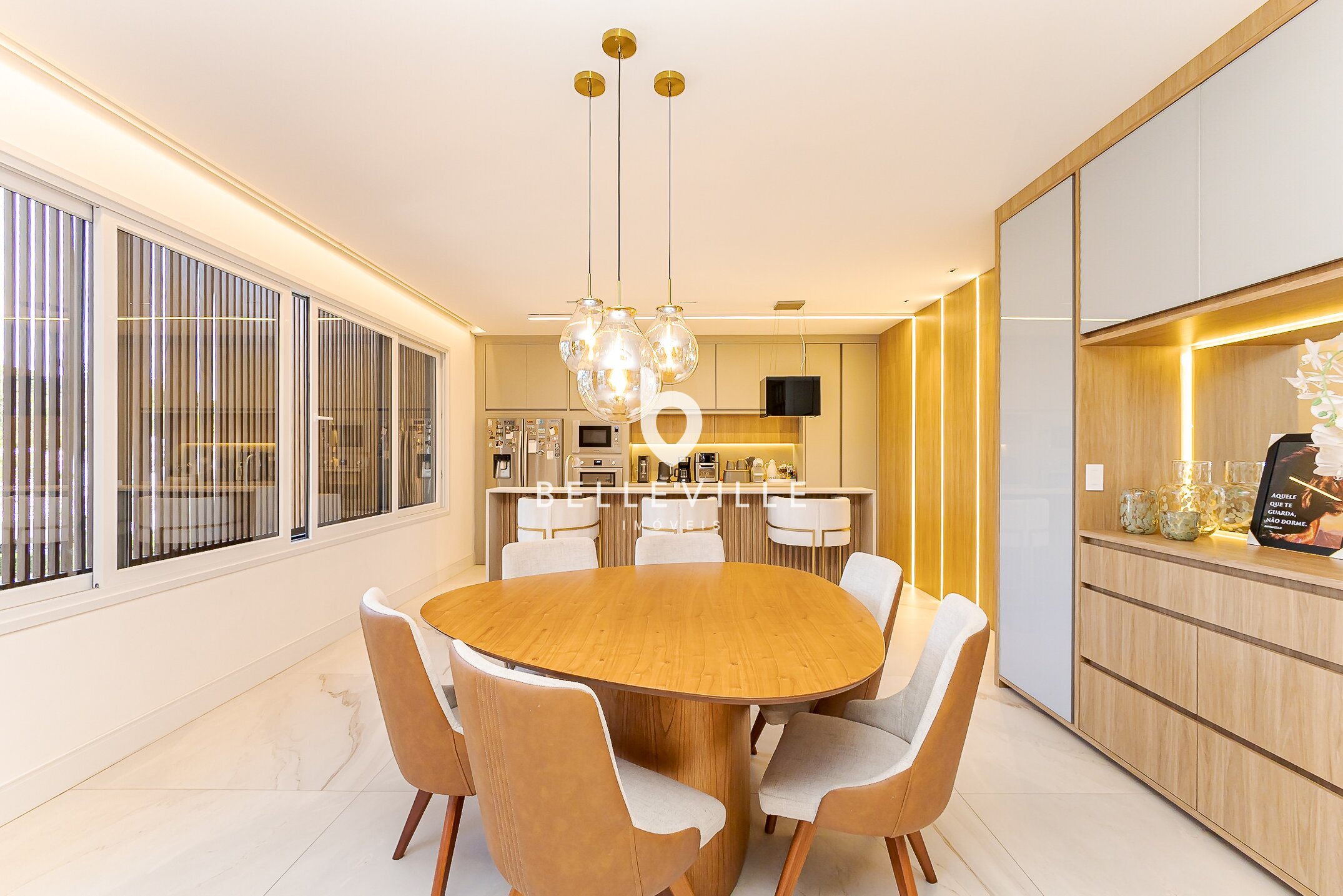 Acabamentos e mobiliário de alto padrão em todos os ambientes.
