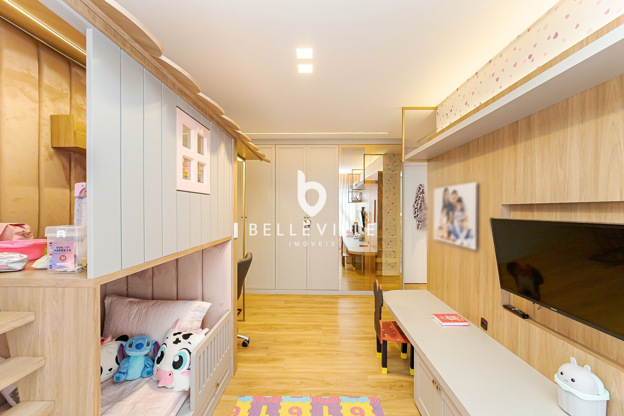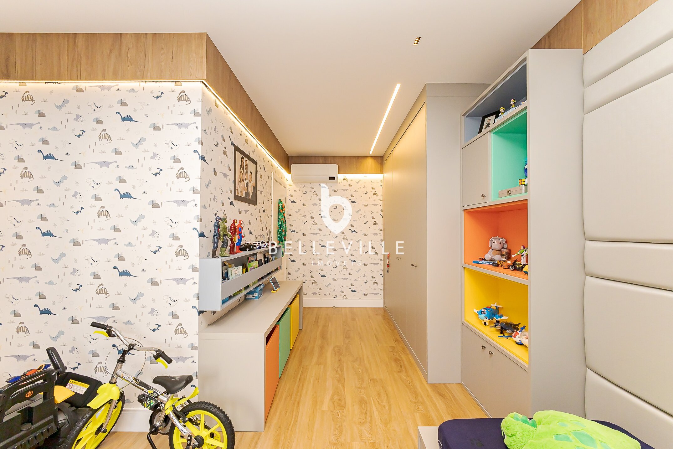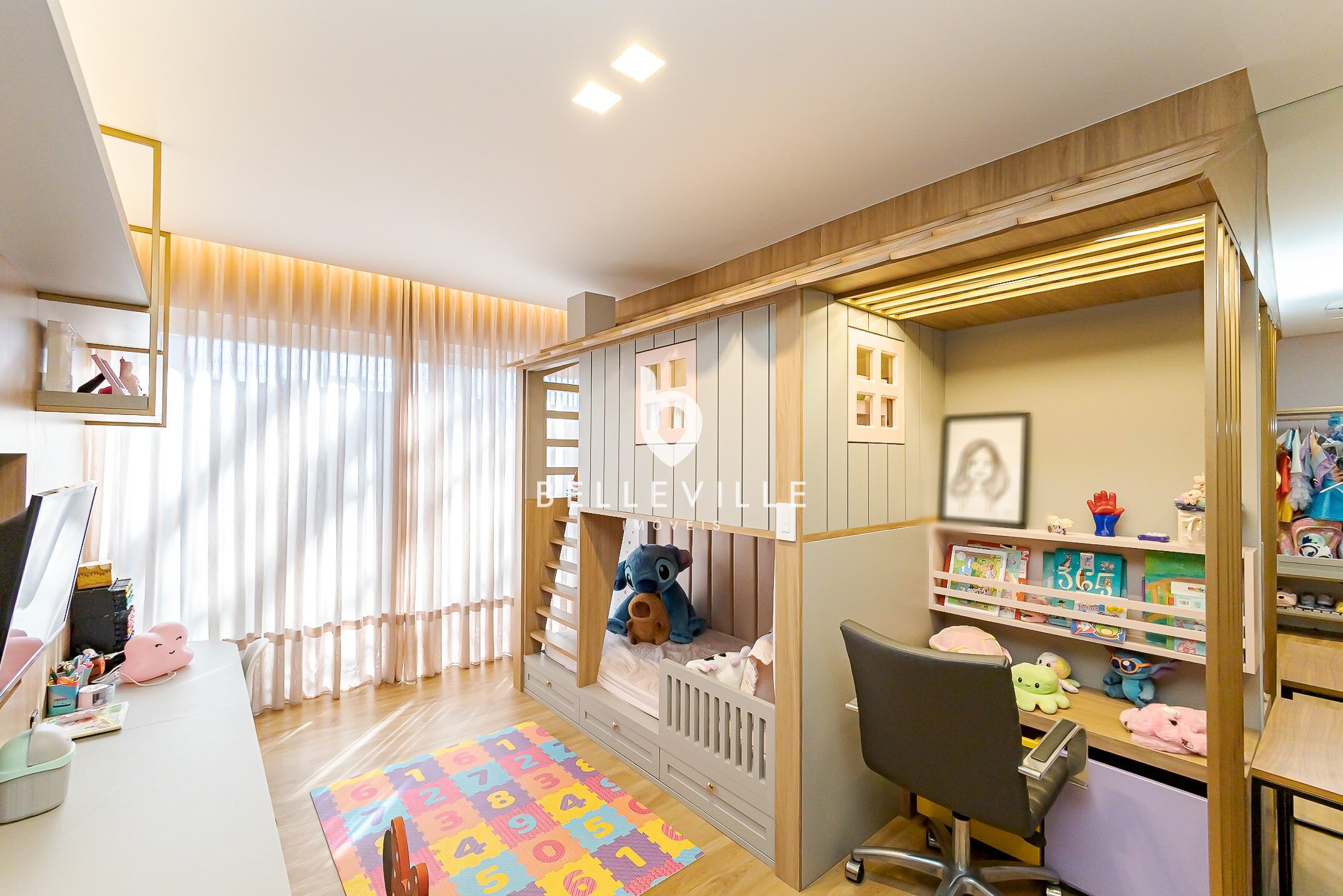 Lavanderia, depósito funcional e brinquedoteca planejada.