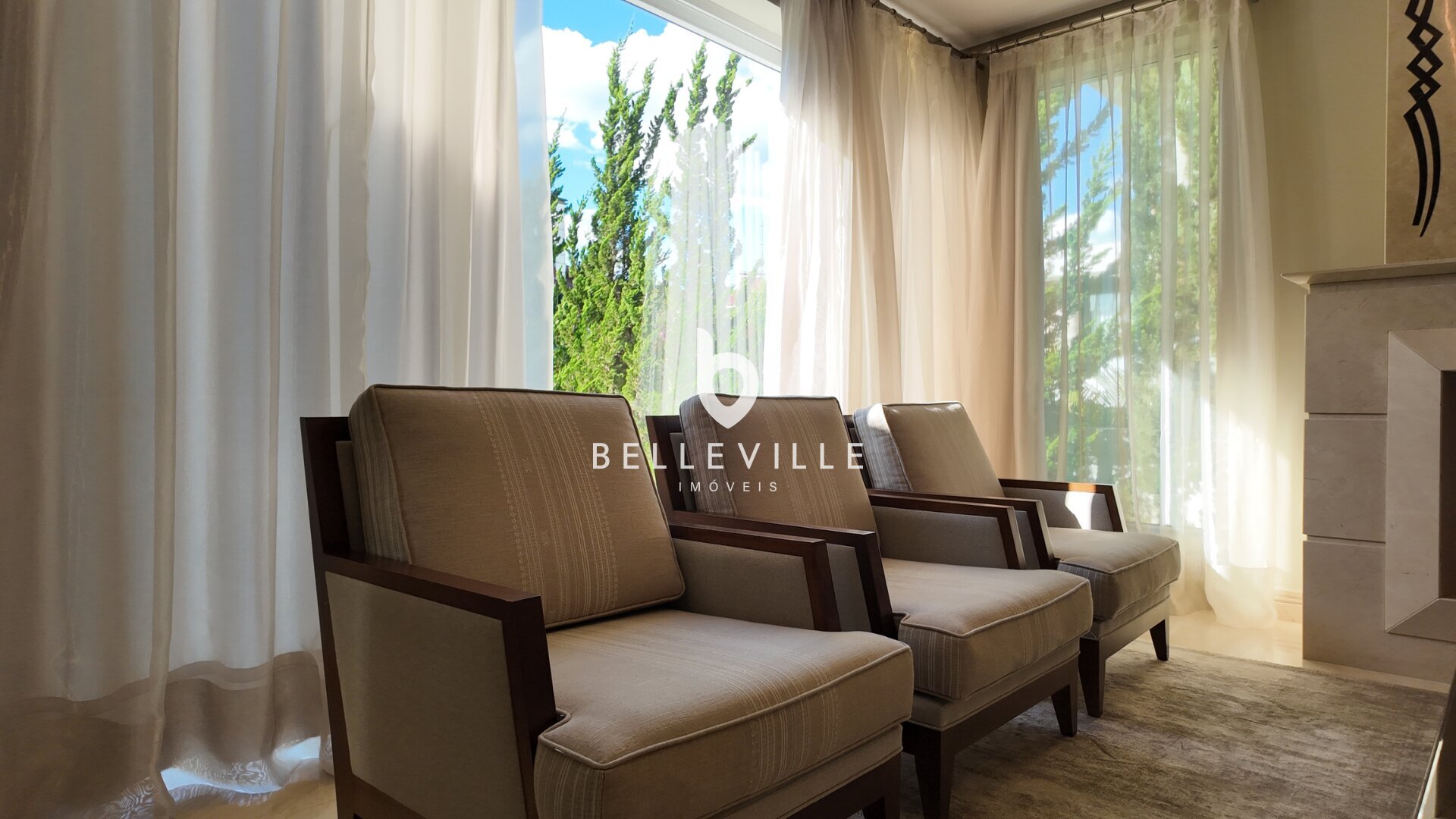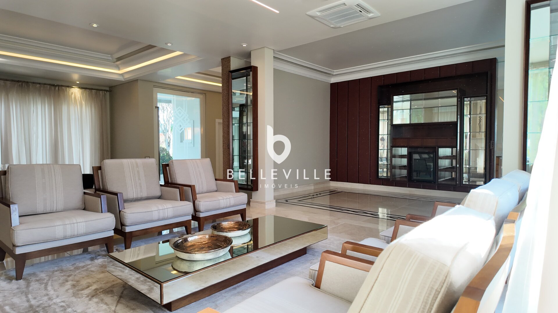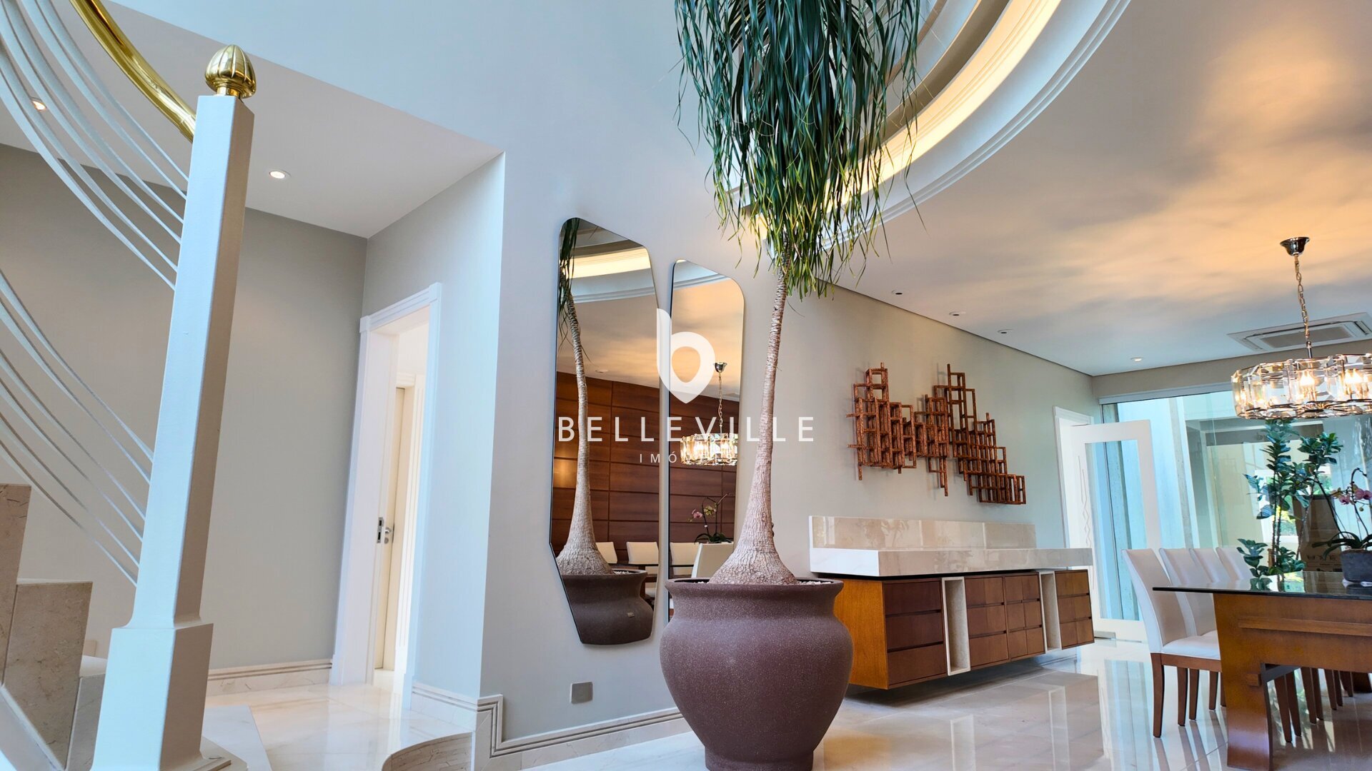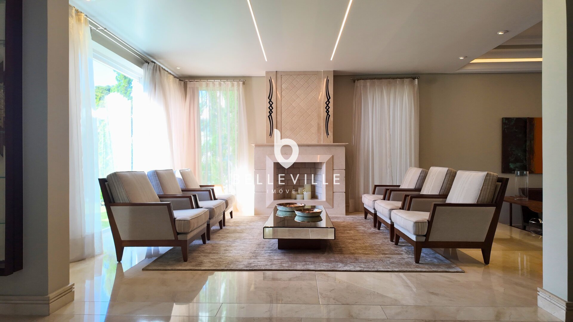 Ao entrar, você é recebido por uma sala de estar para dois ambientes, com lareira a lenha, integrada a uma elegante sala de jantar marcada por uma escada escultura e pé-direito duplo que impressiona. O piso em mármore crema marfil reforça o charme do ambiente, complementado por mobiliário Artefacto e planejados Kitchens, trazendo equilíbrio perfeito entre luxo e funcionalidade.