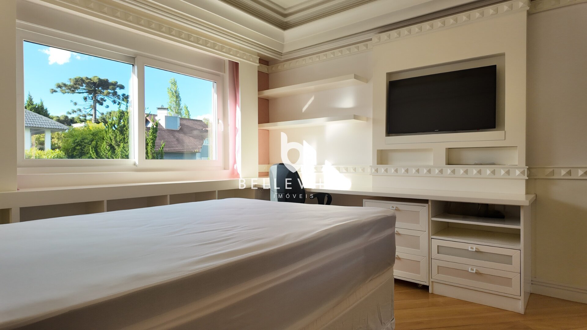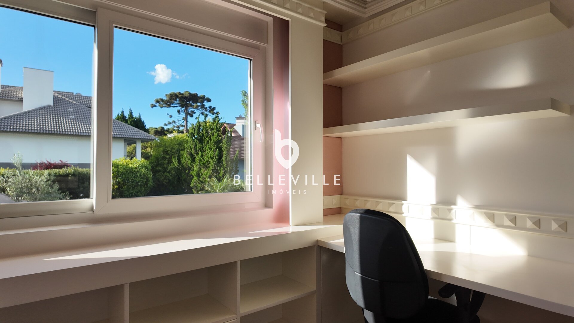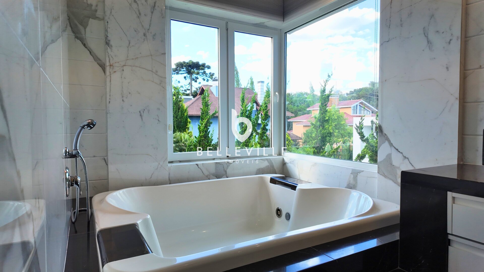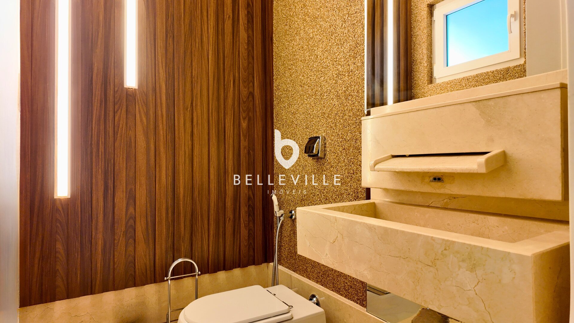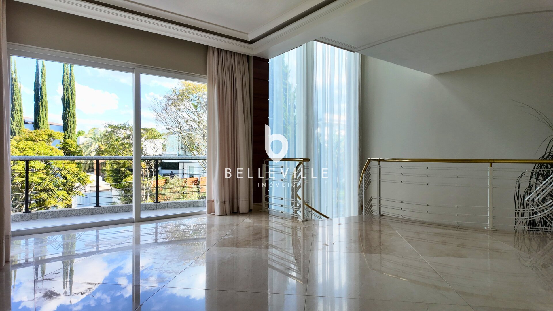 No pavimento superior, uma sala íntima com varanda antecede os 5 quartos — sendo 3 suítes, 1 demi-suíte e mais uma suíte utilizada como escritório. Todos com piso de madeira, closets, banheiros em mármore, piso aquecido e climatização. A suíte master é um capítulo à parte, com amplo closet e banheiro com hidro que transforma o dia a dia em puro relaxamento.