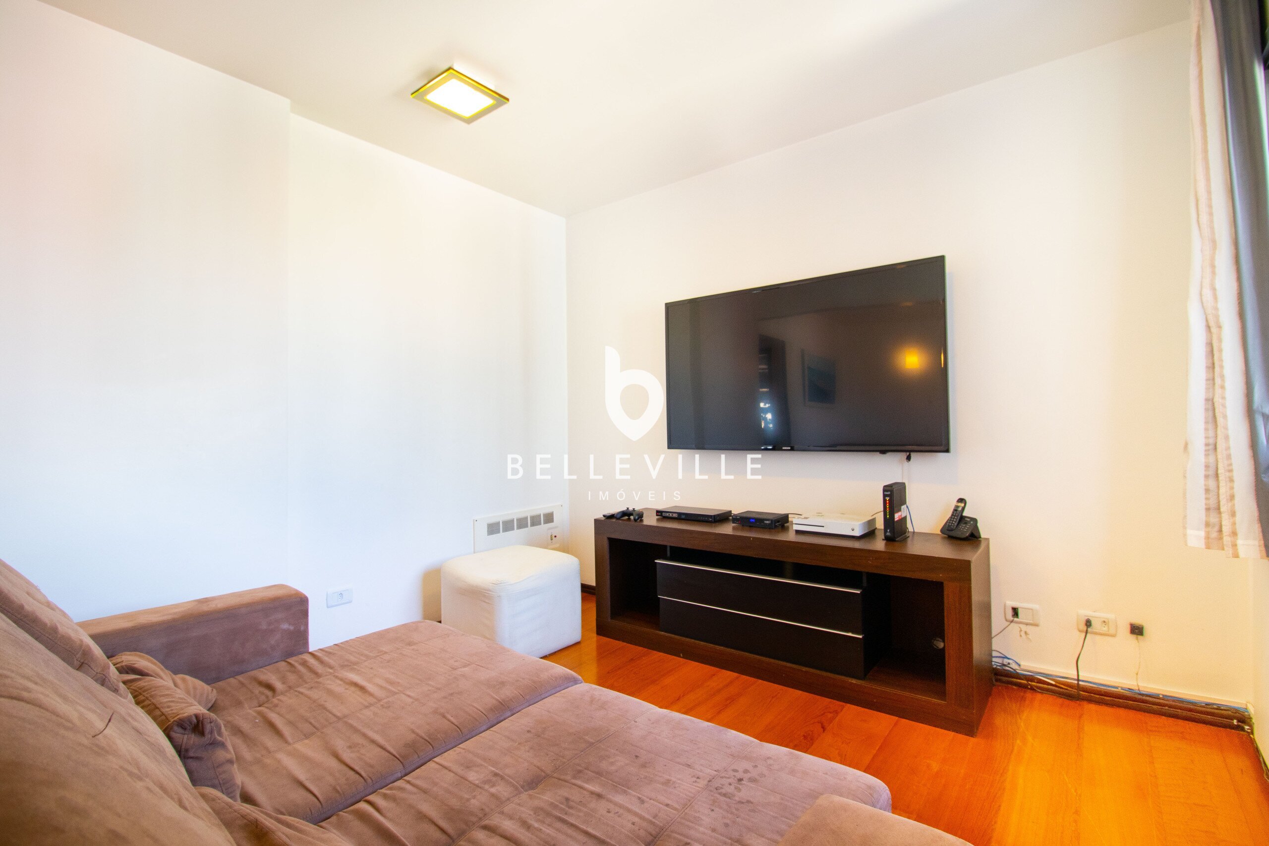 Os ambientes sociais possuem piso de madeira e o apartamento conta com calefação em todos os cômodos, garantindo conforto térmico durante todo o ano. Possui ainda 2 vagas de garagem.