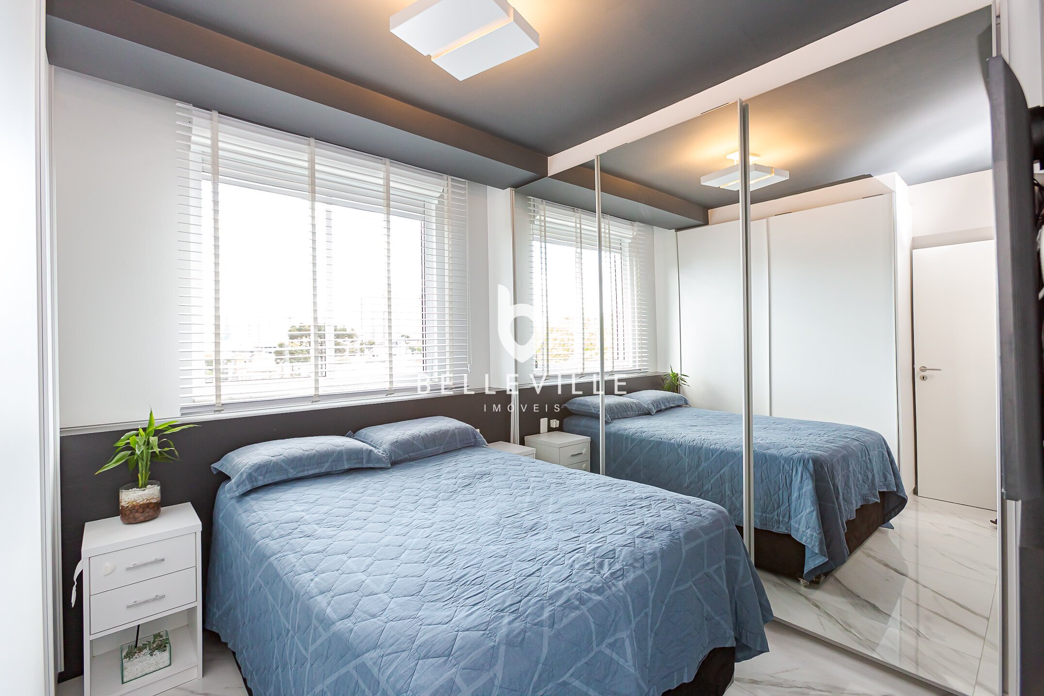 São duas suítes, ambas confortáveis e bem distribuídas, com a possibilidade de reverter para três dormitórios, se desejar.