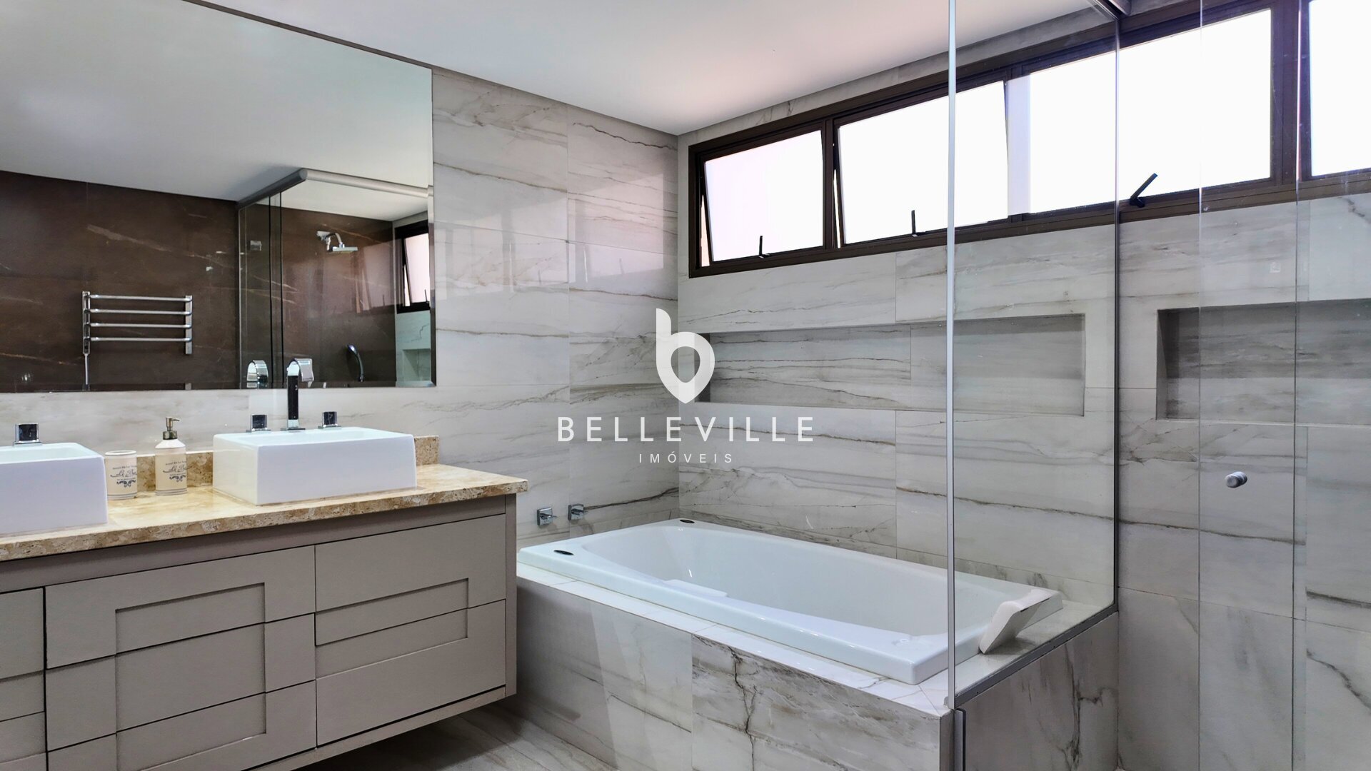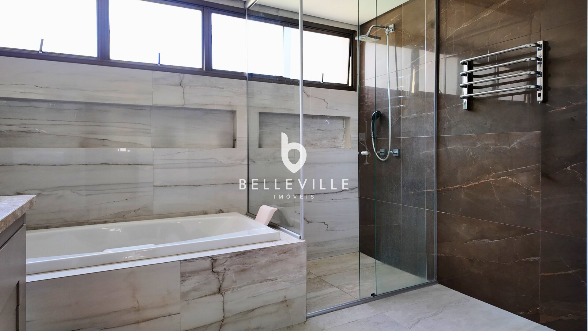 Suíte master com hidromassagem, secador de toalhas, piso aquecido e closet;