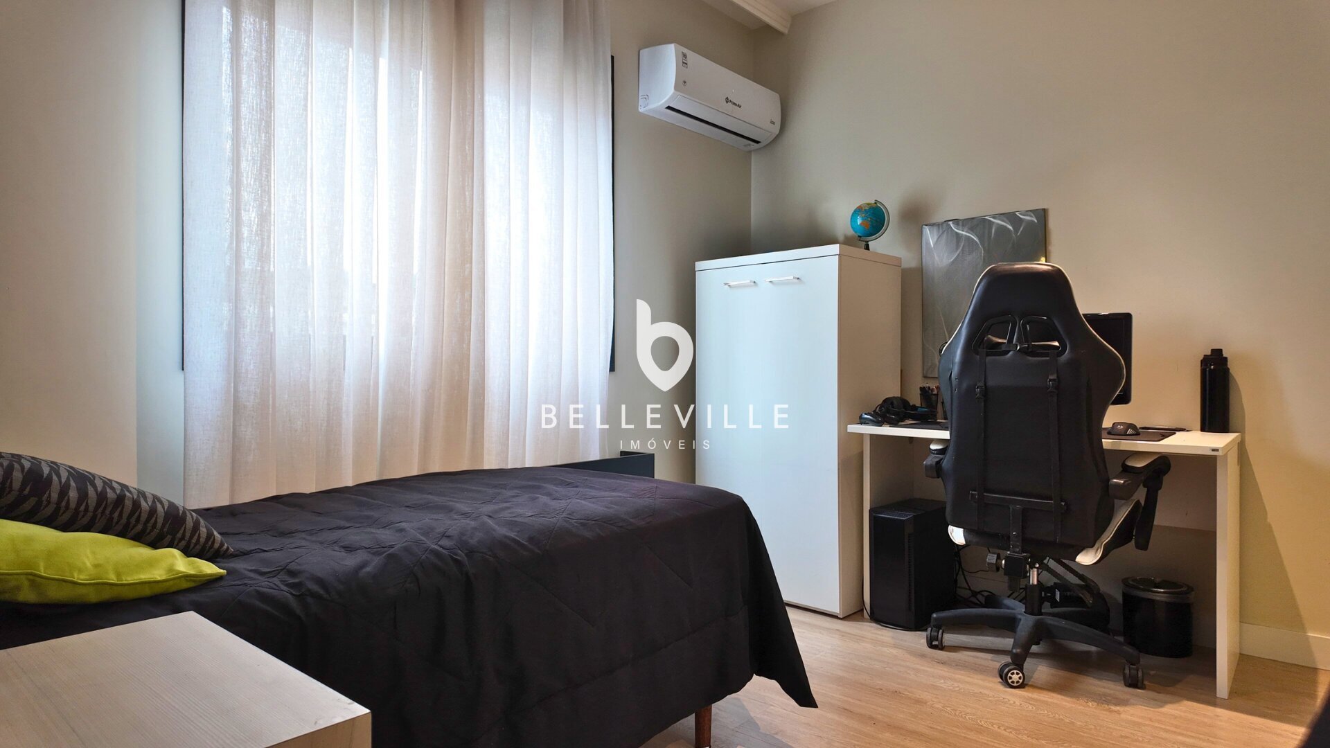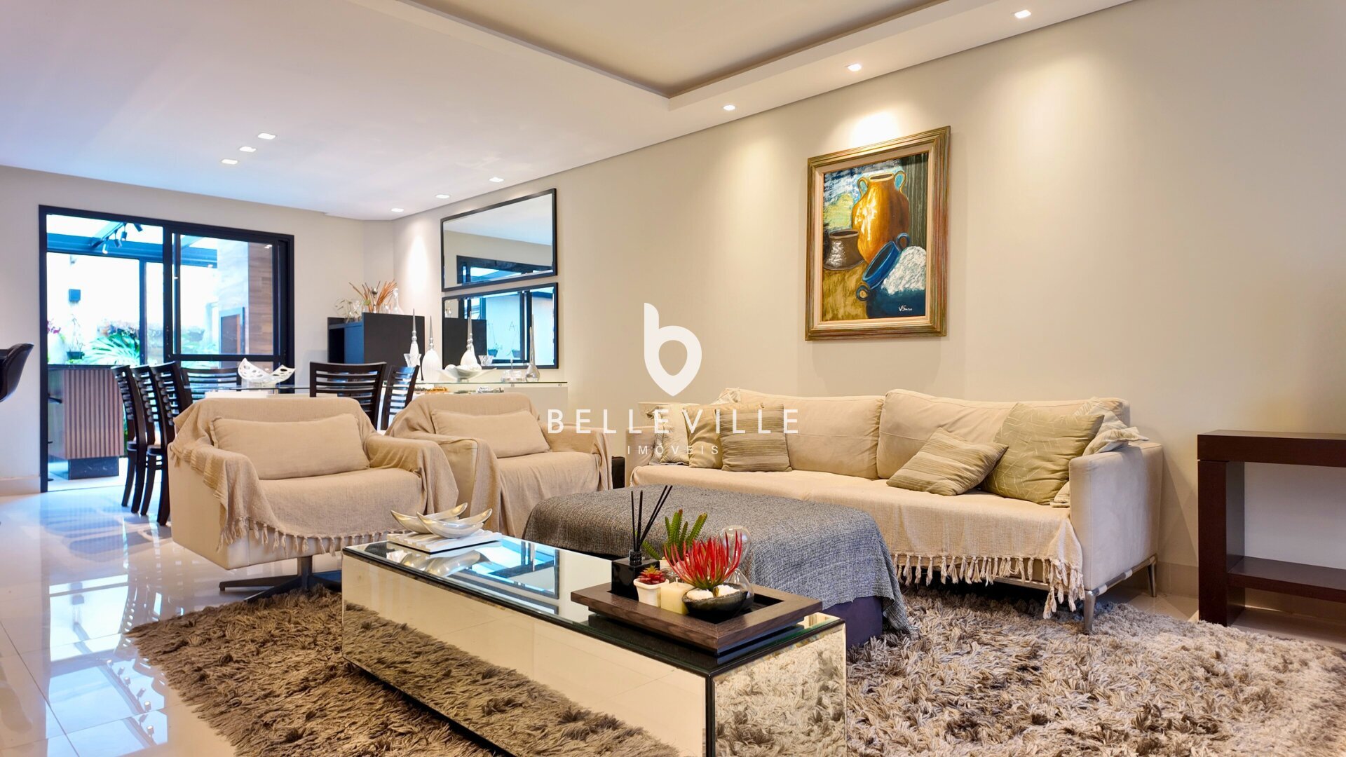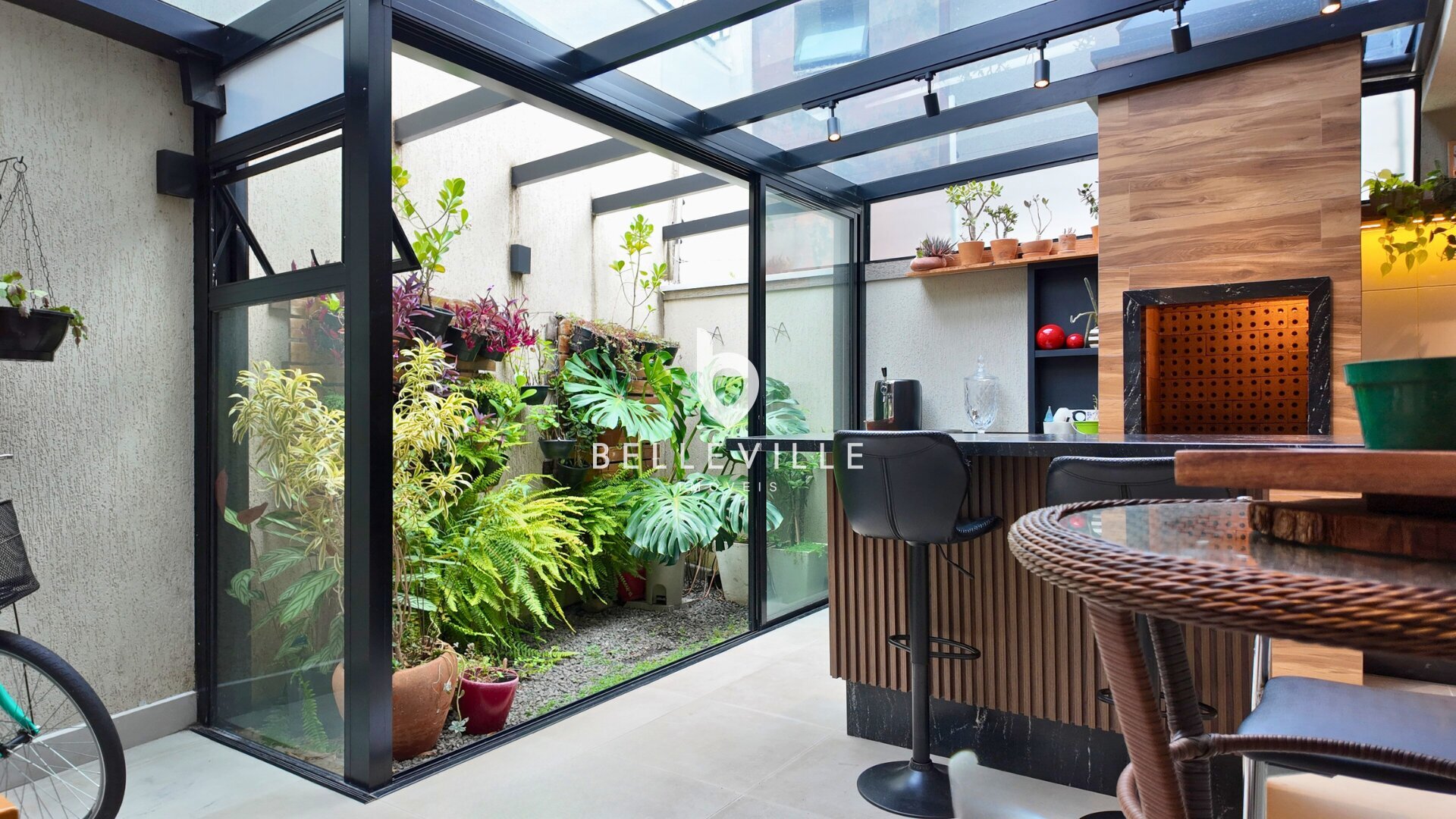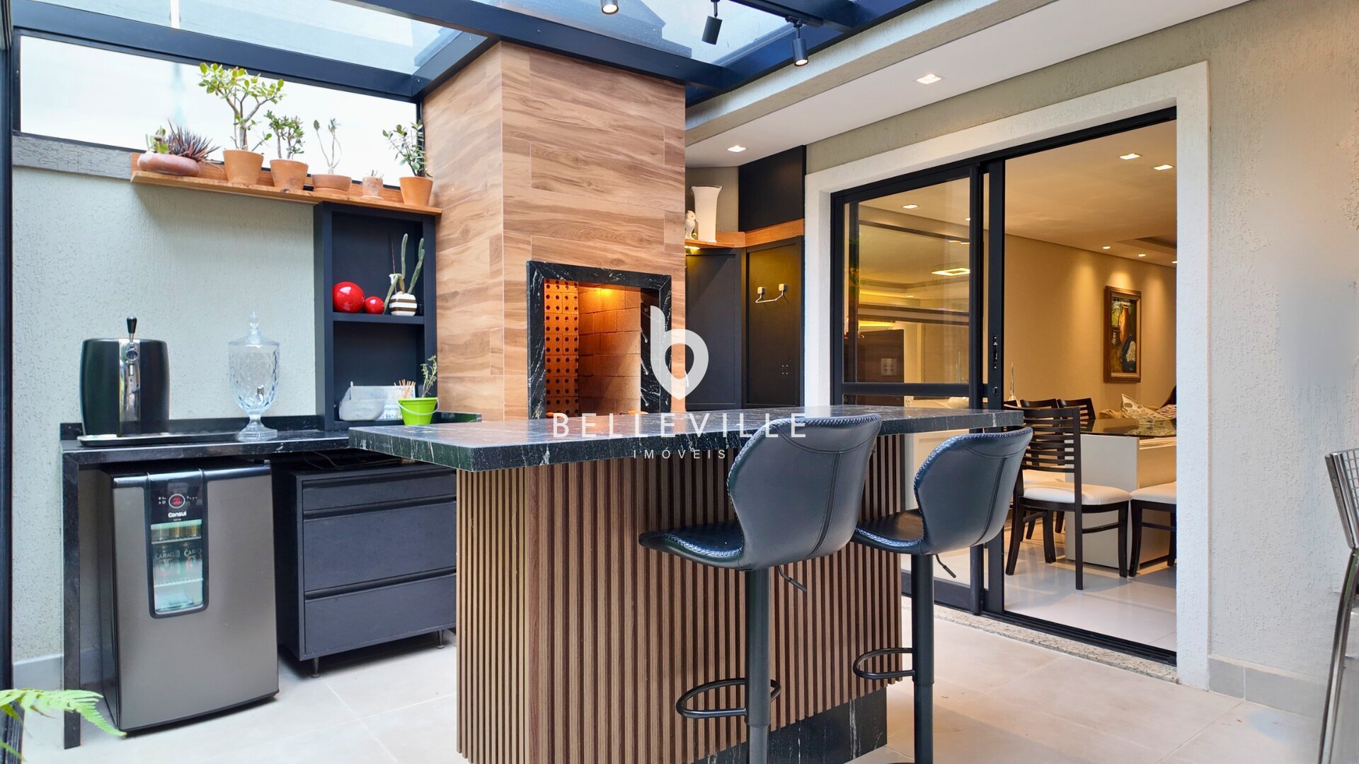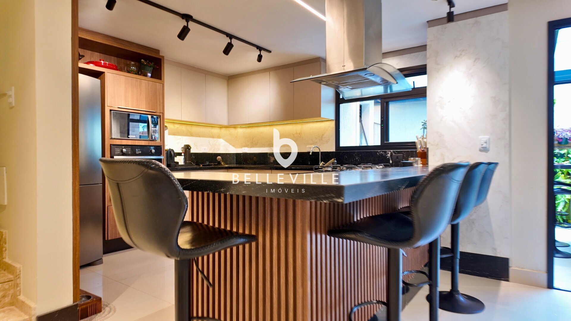 Sistema de alarme e câmeras de segurança, aquecimento a gás, ar-condicionado nos dormitórios e no escritório/sala de TV, teto em gesso com excelente acabamento, banheiros com box em vidro temperado, cozinha planejada completa e tomada 220V para carro elétrico.