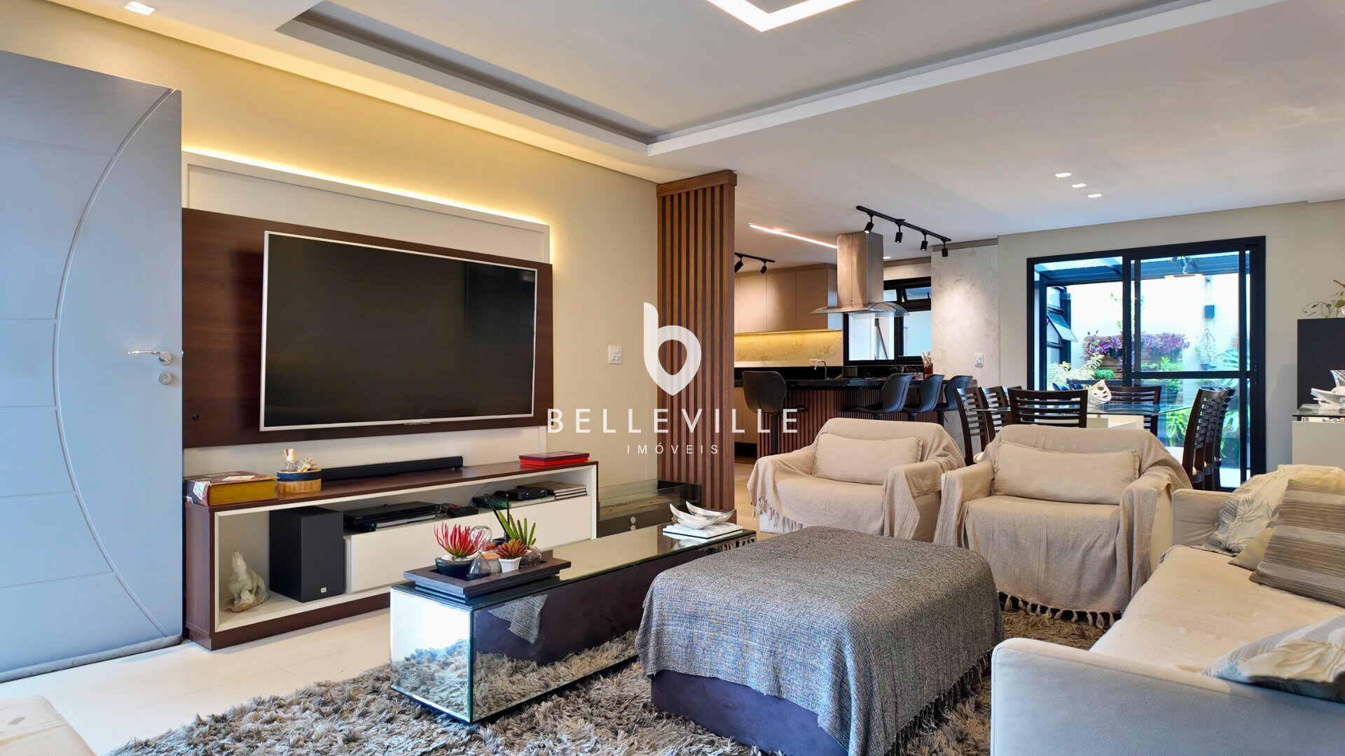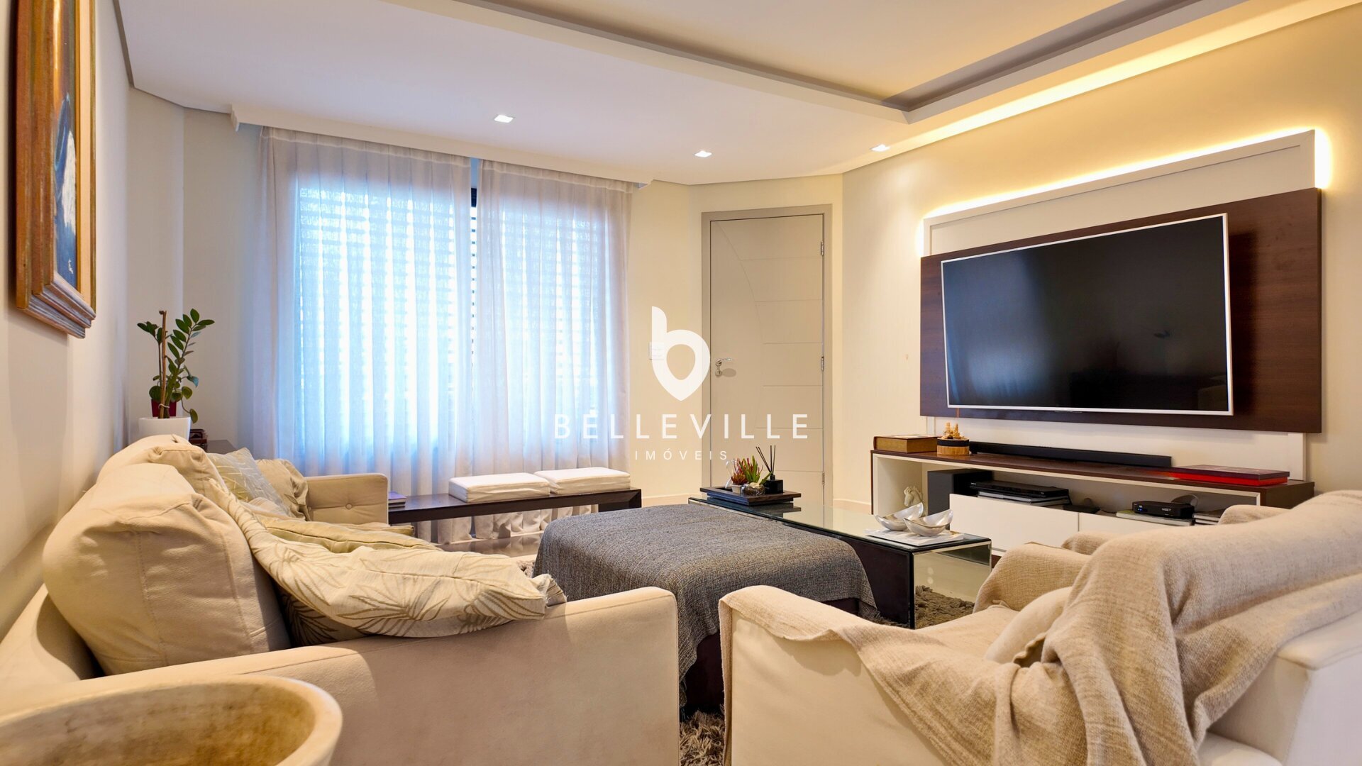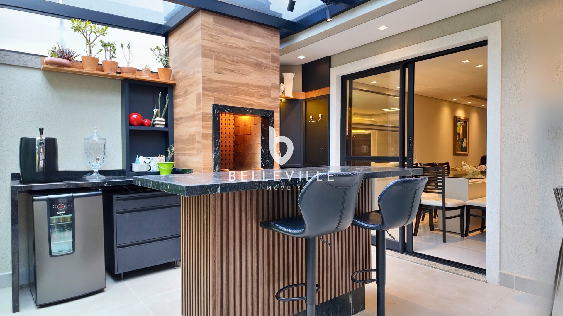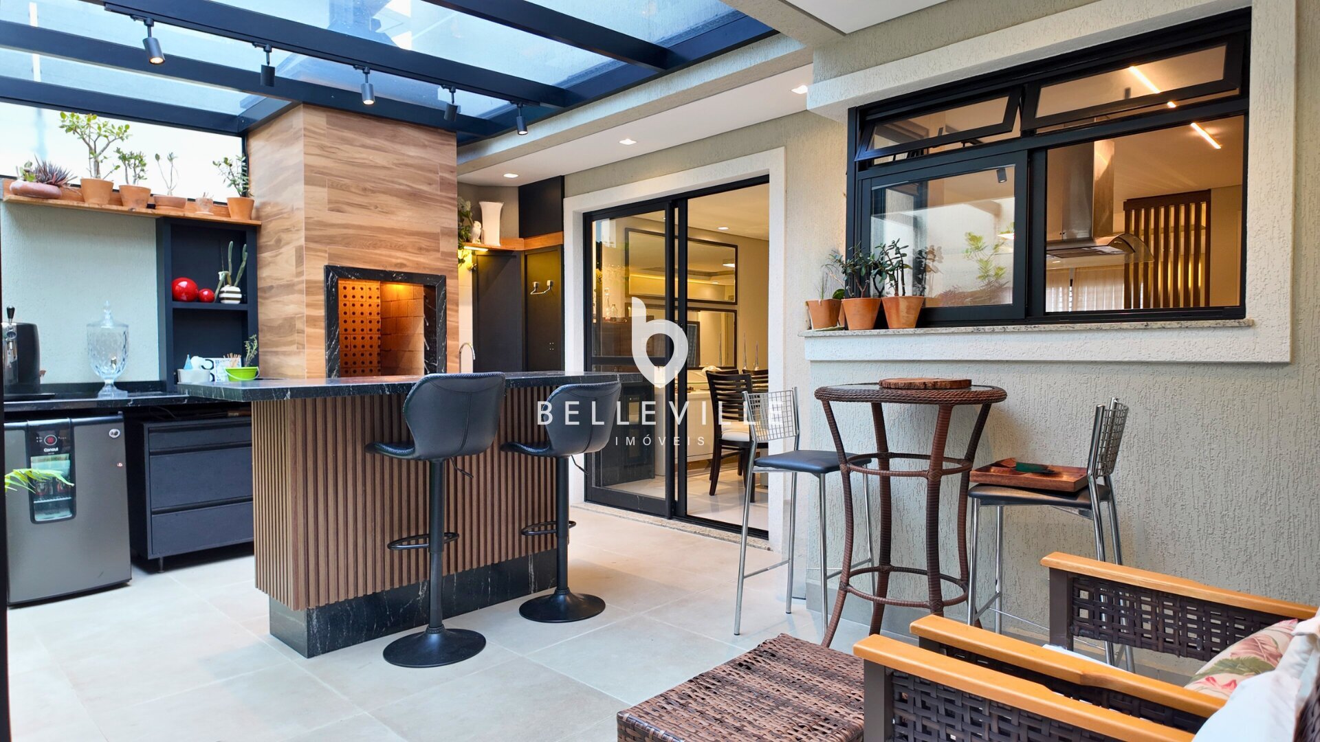 Sistema de alarme e câmeras de segurança, aquecimento a gás, ar-condicionado nos dormitórios e no escritório/sala de TV, teto em gesso com excelente acabamento, banheiros com box em vidro temperado, cozinha planejada completa e tomada 220V para carro elétrico.