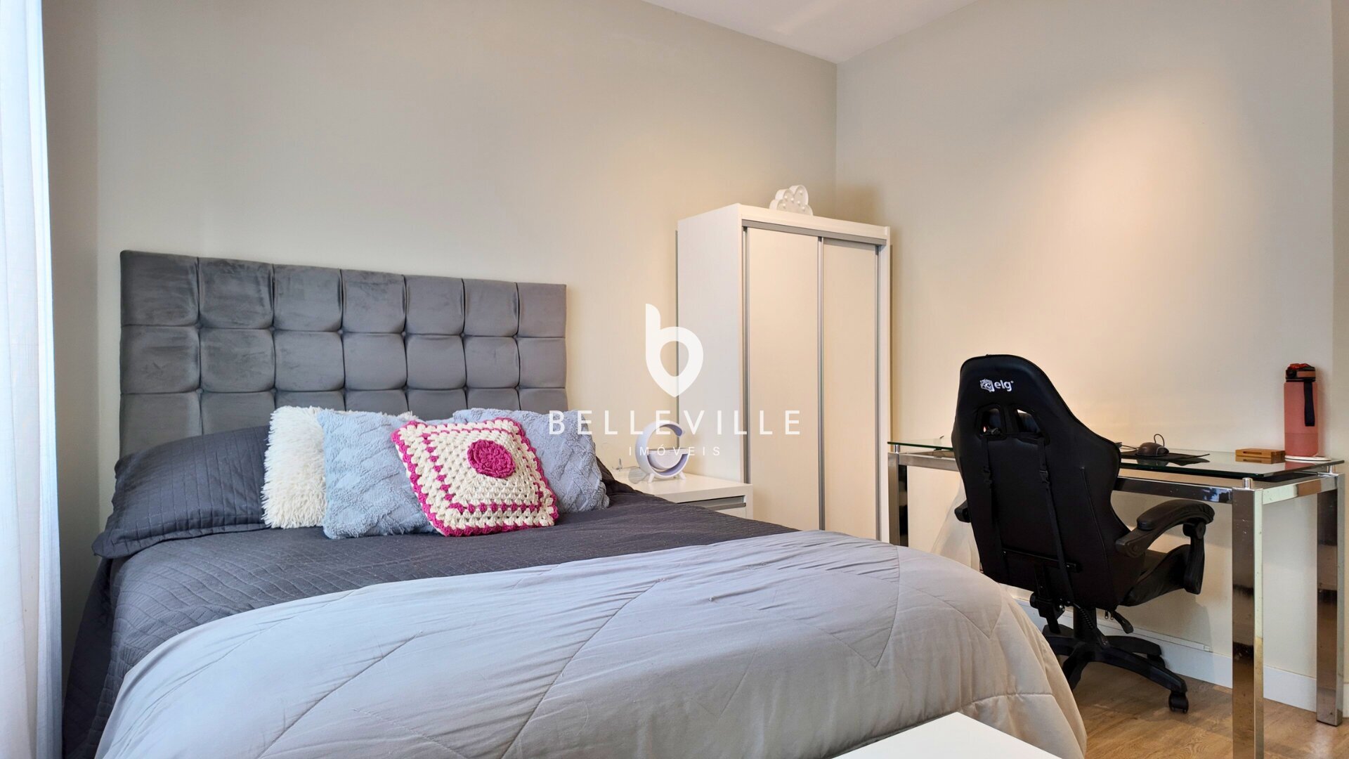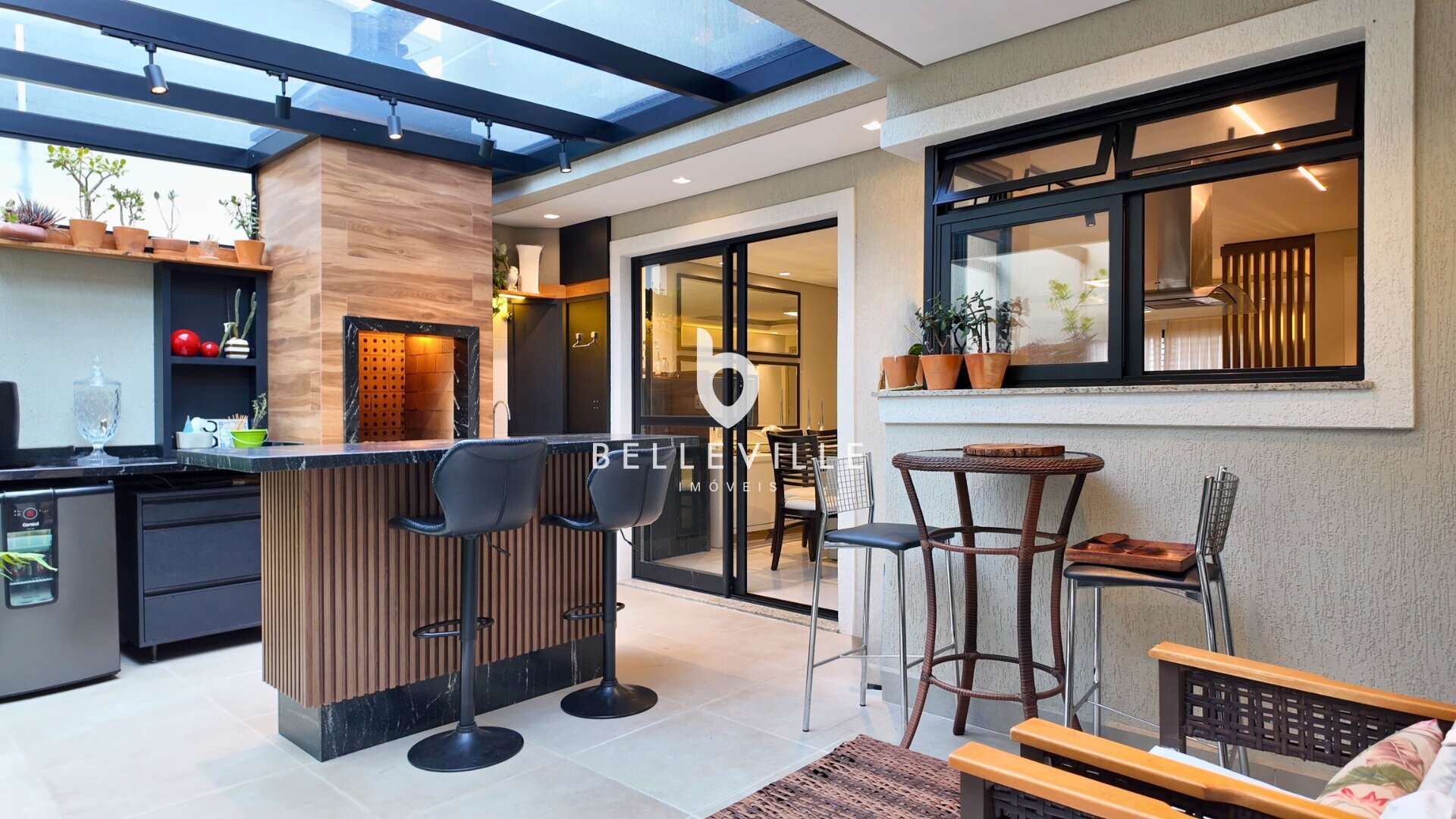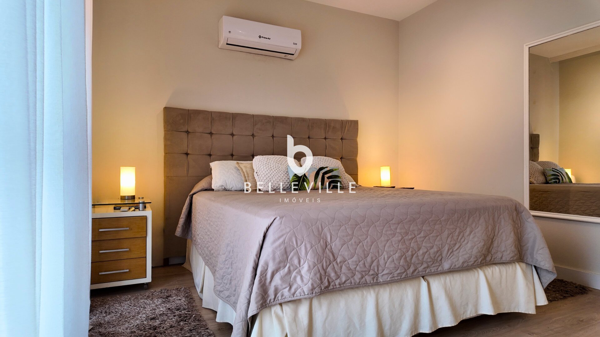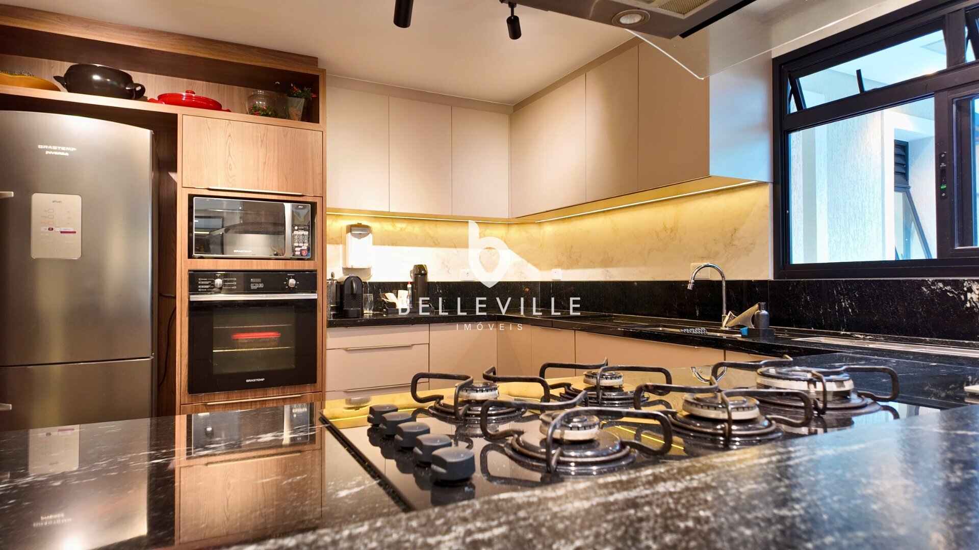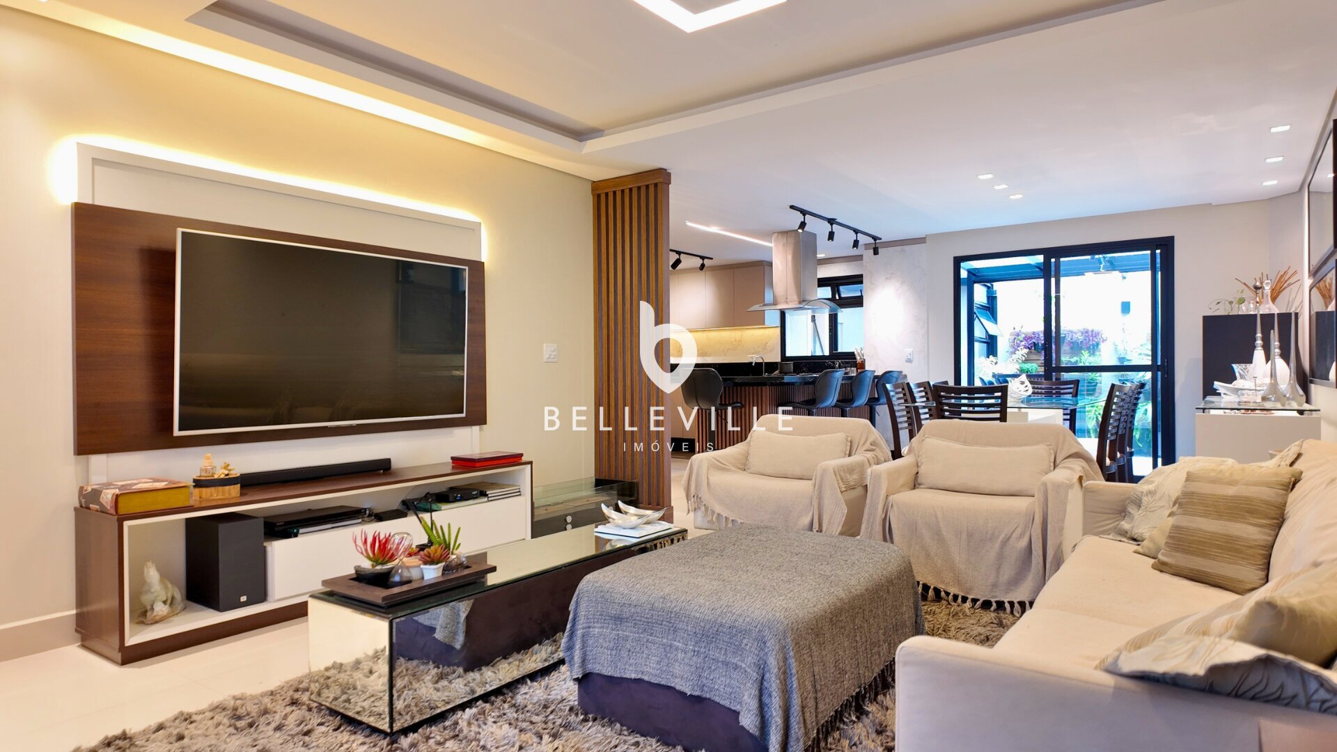 Sistema de alarme e câmeras de segurança, aquecimento a gás, ar-condicionado nos dormitórios e no escritório/sala de TV, teto em gesso com excelente acabamento, banheiros com box em vidro temperado, cozinha planejada completa e tomada 220V para carro elétrico.