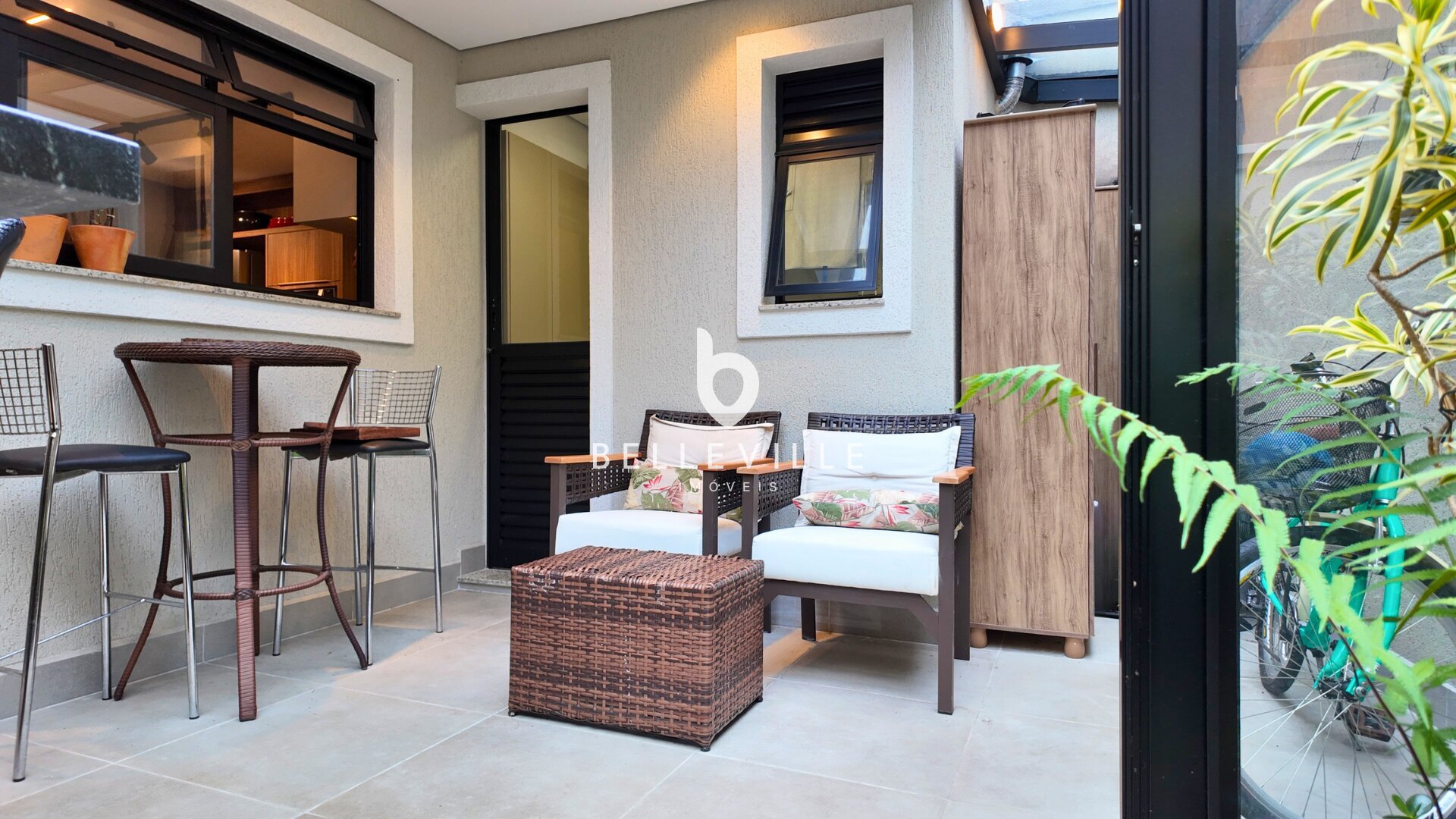 São 3 suítes com esquadrias em alumínio e venezianas automatizadas. A suíte máster dispõe de sacada, cubas duplas, box em vidro temperado e armários planejados. A área social é integrada, com sala de estar, jantar e cozinha, equipada com bancadas em granito escovado, cooktop, coifa e armários planejados. O espaço gourmet conta com cobertura em vidro temperado, bancada em granito escovado e churrasqueira a carvão. O ático oferece um ambiente versátil para escritório ou sala de TV, além de um terraço com vista agradável. O imóvel dispõe ainda de 2 vagas de garagem, sendo uma coberta.