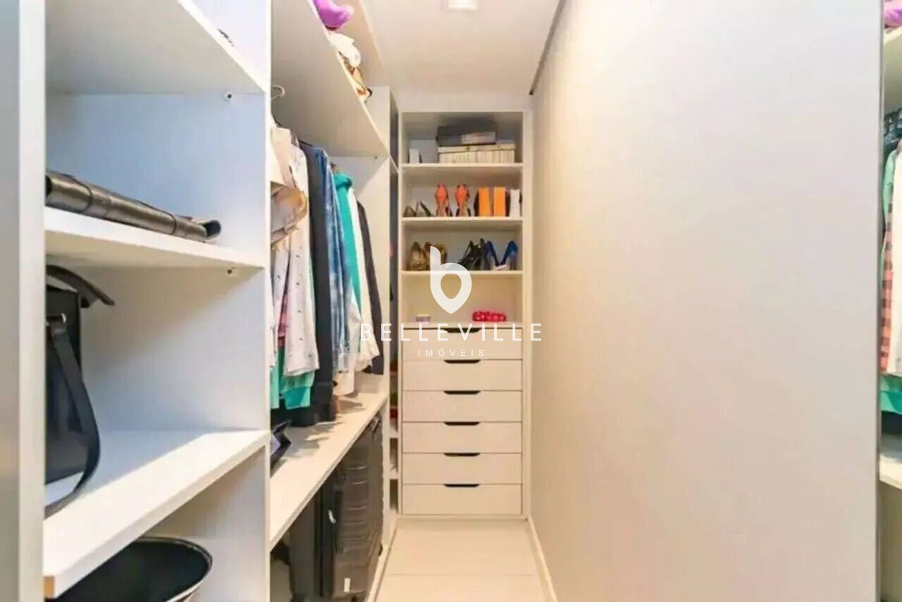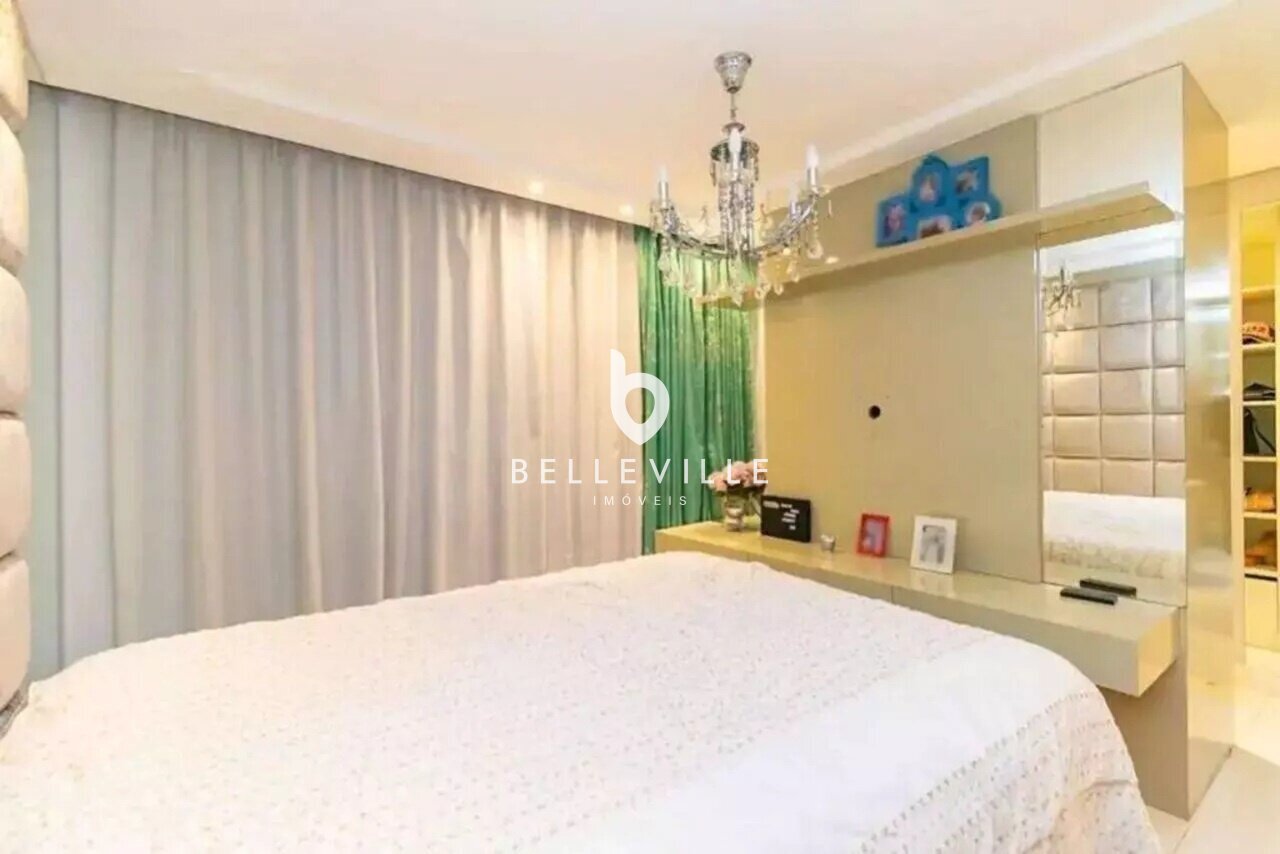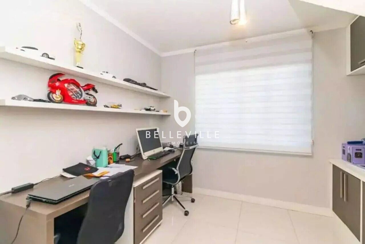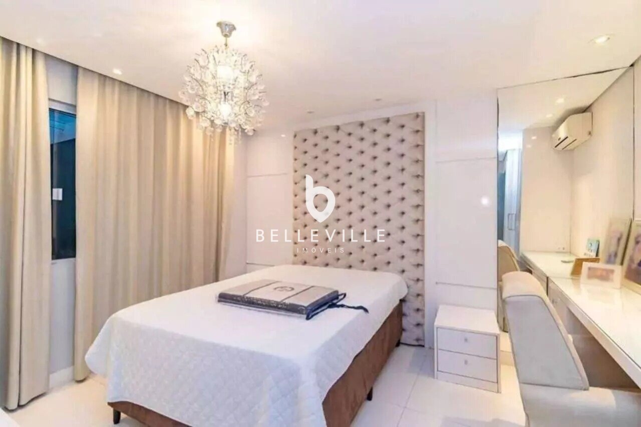 São cinco quartos, incluindo uma suíte master e outra suíte com closet, além de escritório e banheiro social — tudo com excelentes móveis planejados e acabamentos de alto padrão.