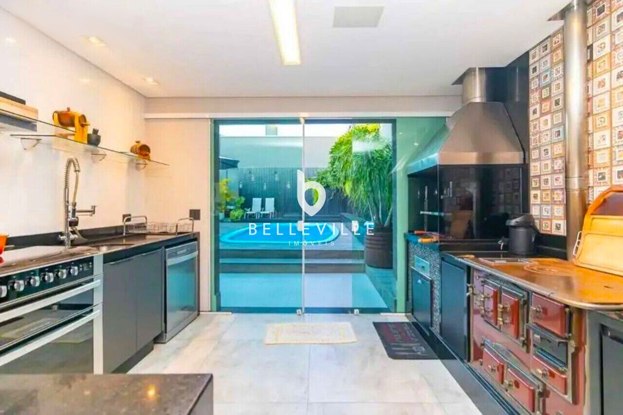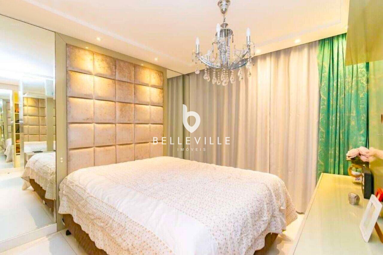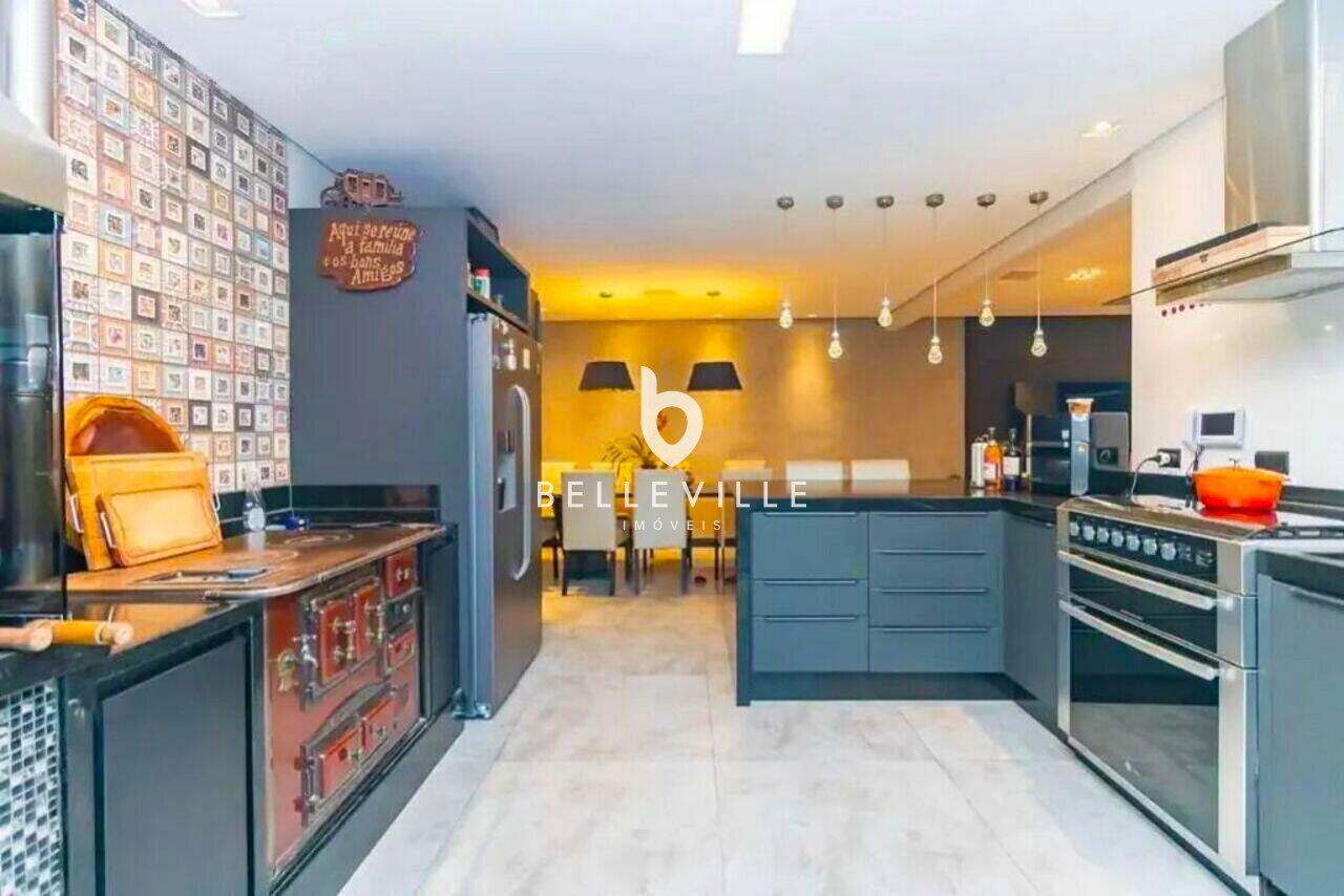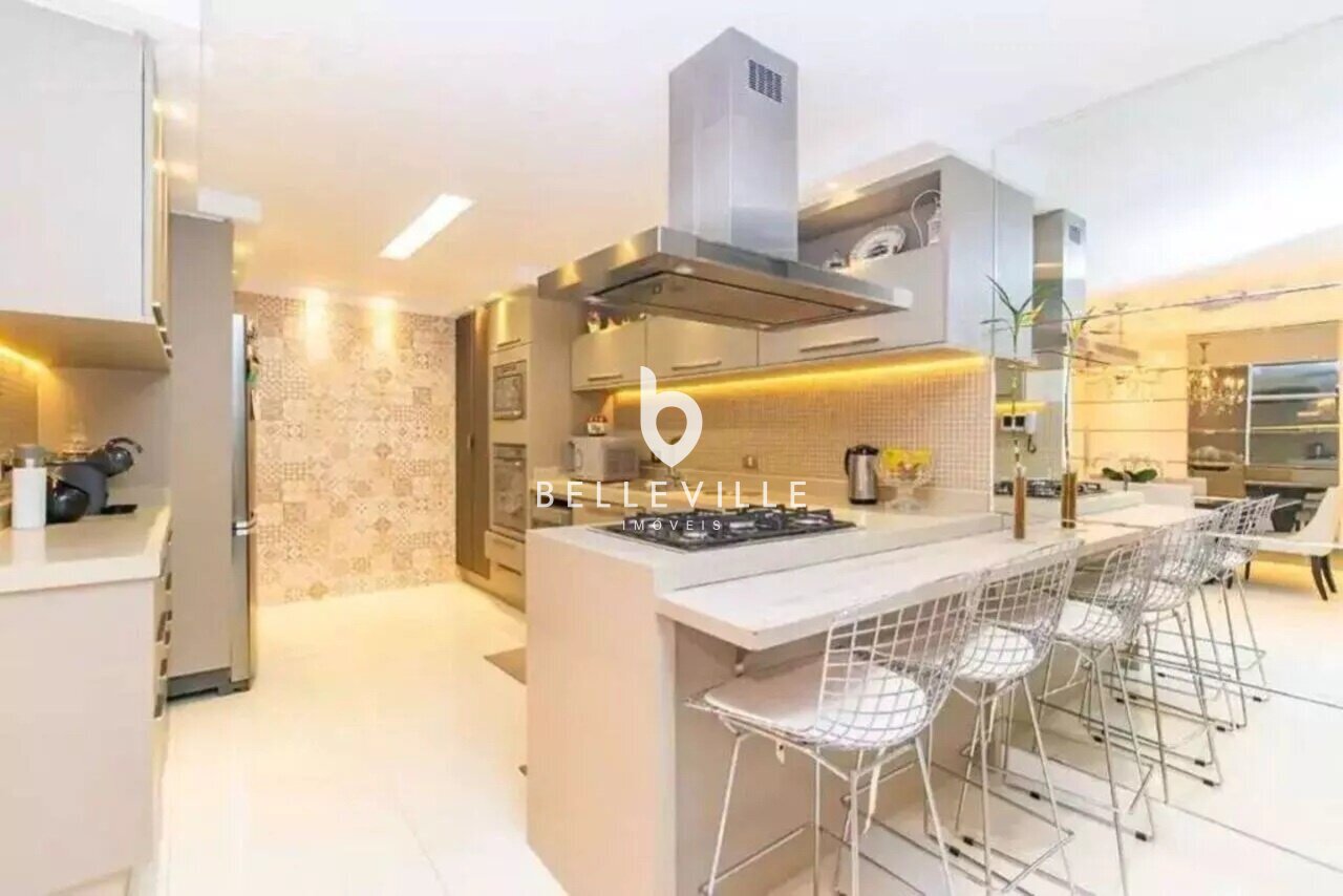 São cinco quartos, incluindo uma suíte master e outra suíte com closet, além de escritório e banheiro social — tudo com excelentes móveis planejados e acabamentos de alto padrão.
