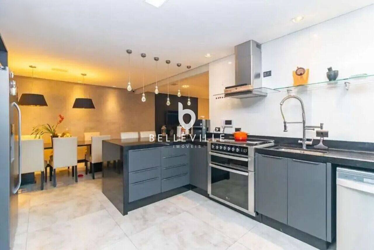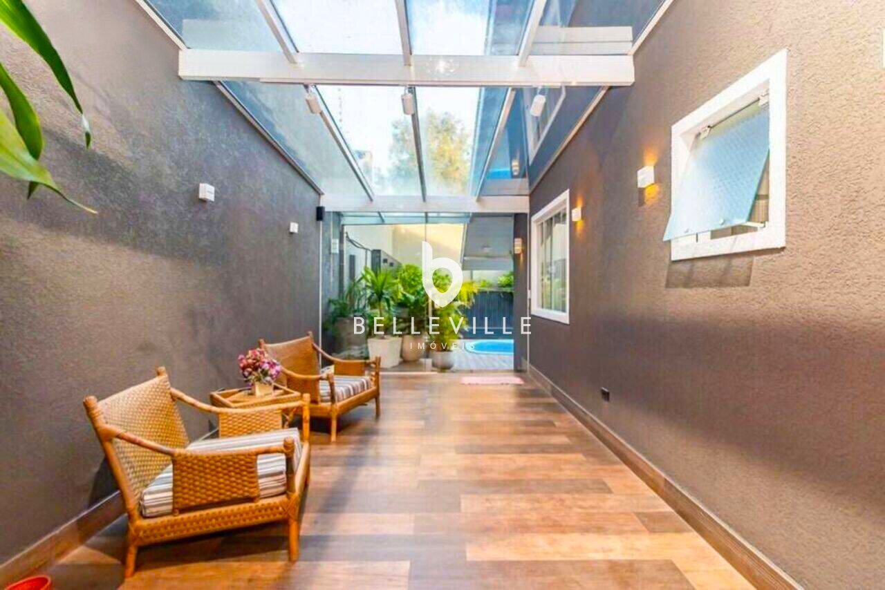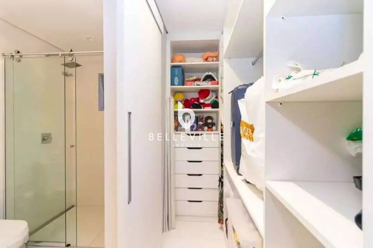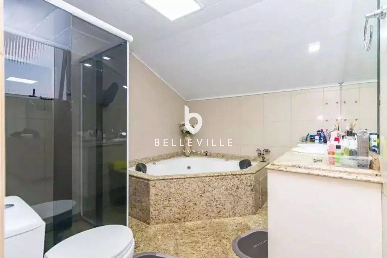 São cinco quartos, incluindo uma suíte master e outra suíte com closet, além de escritório e banheiro social — tudo com excelentes móveis planejados e acabamentos de alto padrão.