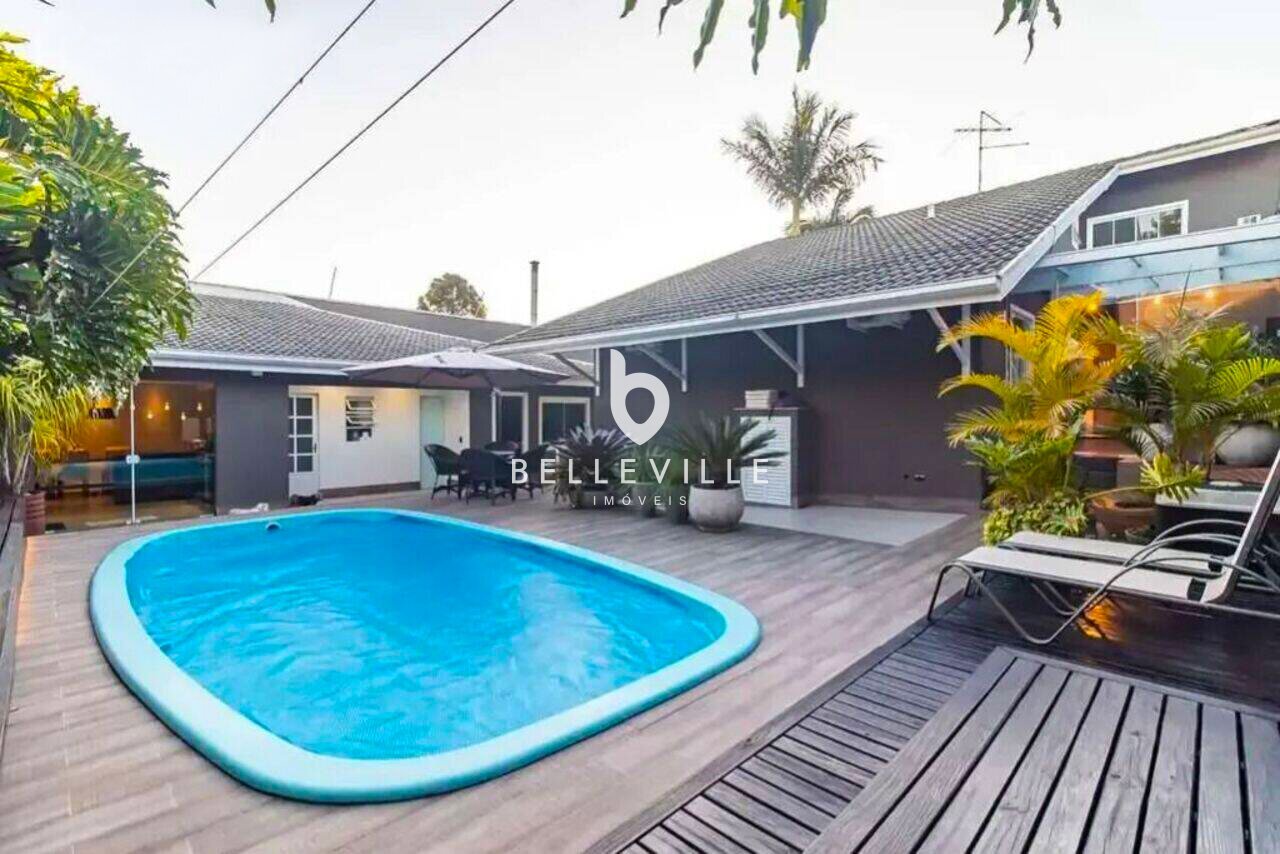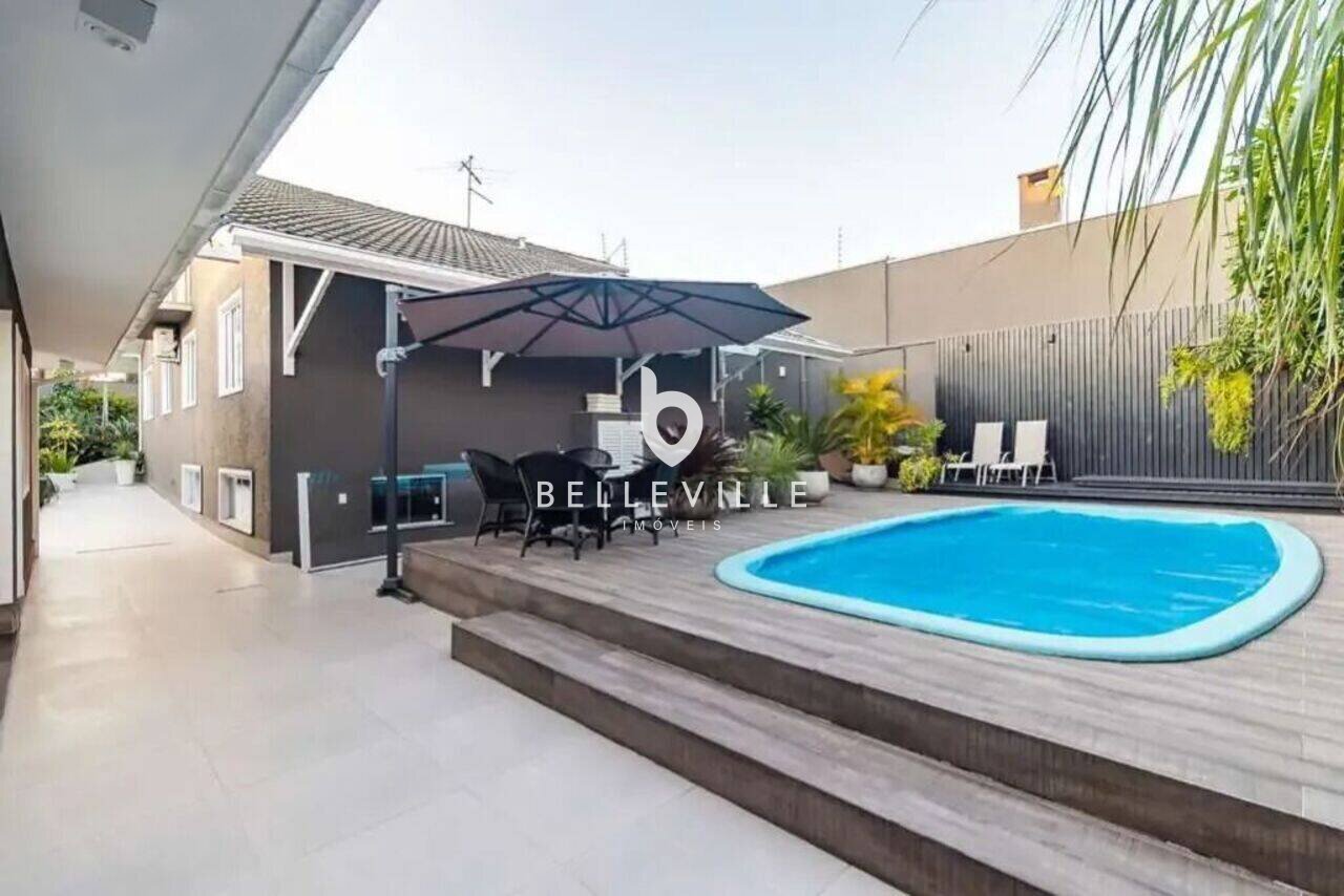 Quintal amplo com piscina aquecida, área verde cuidadosamente planejada e um jardim exuberante. O espaço perfeito para relaxar ou receber amigos e familiares em momentos inesquecíveis.