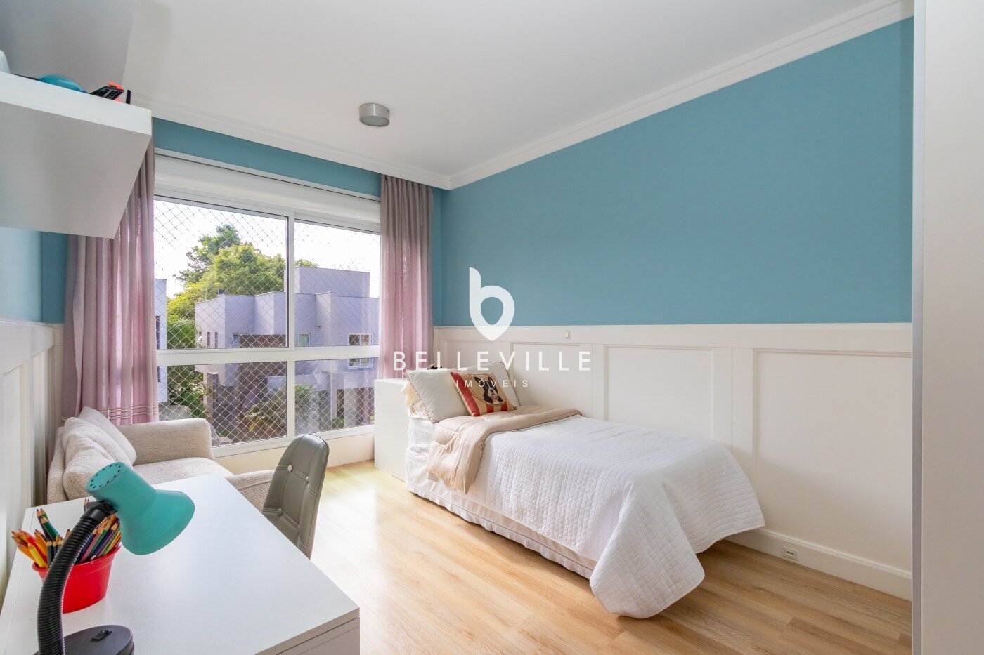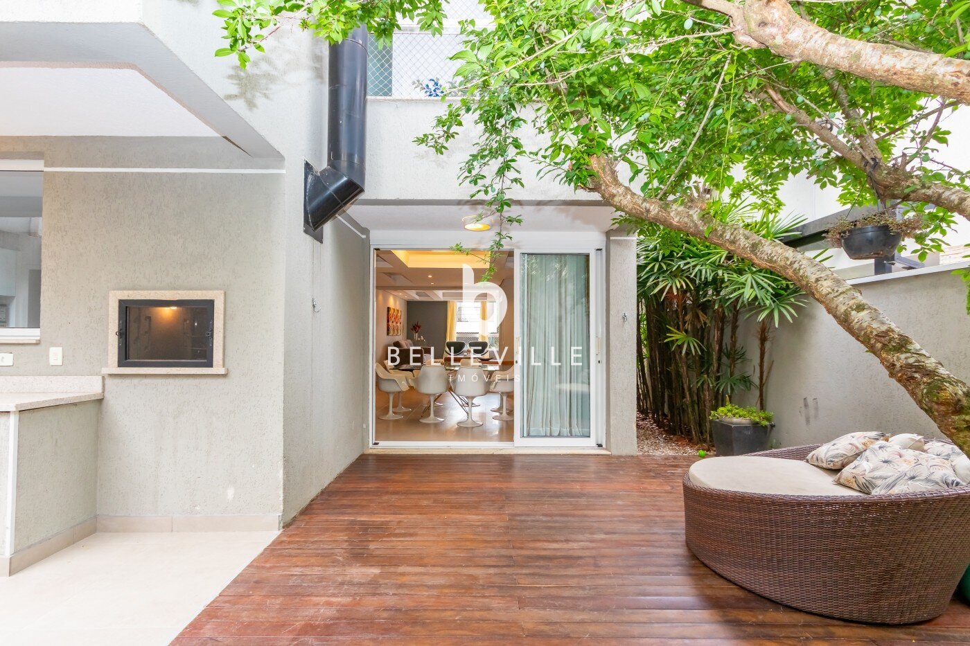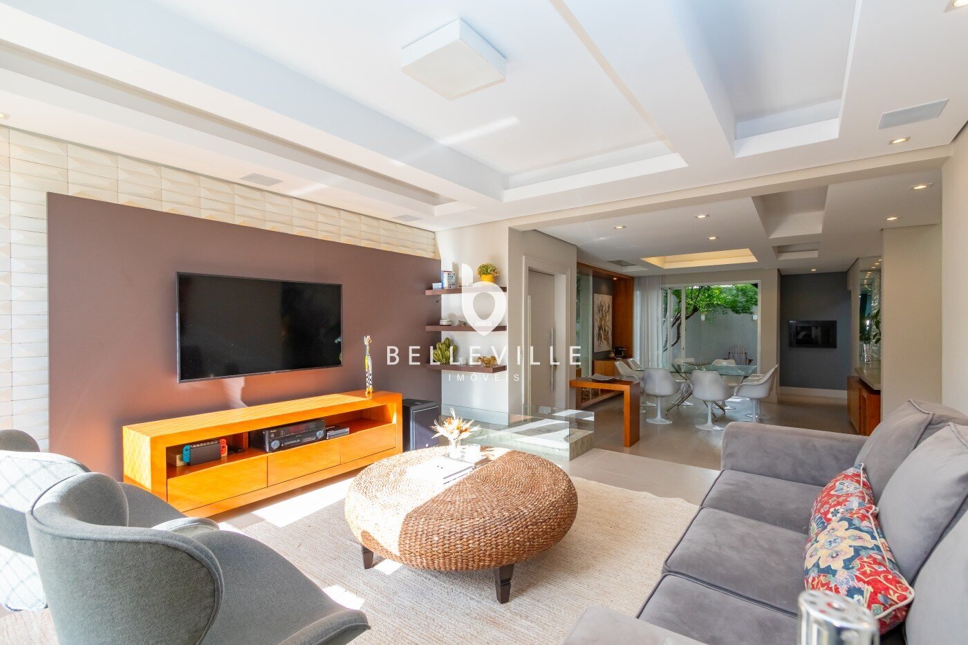 Entre os diferenciais, o imóvel dispõe de sistema de aspiração central, preparação para ar-condicionado na sala, duas caixas d’água e garagem coberta para até três veículos.