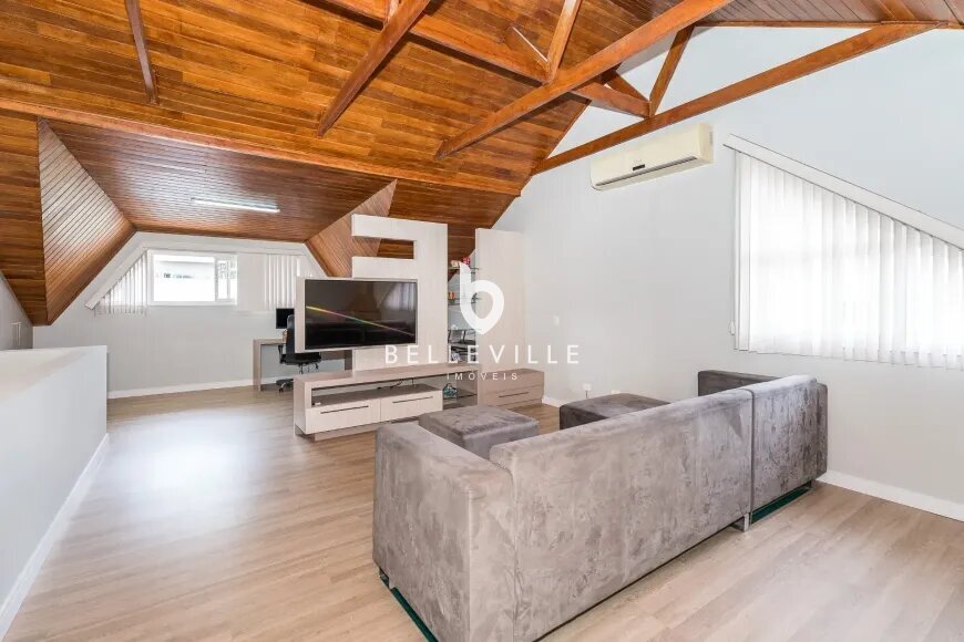 Com um projeto que valoriza o pé-direito alto e a iluminação natural, o imóvel conta com uma área externa encantadora, incluindo piscina aquecida e espaço gourmet coberto com churrasqueira a carvão. No interior, os espaços são bem distribuídos, com destaque para a sala principal, perfeita para receber convidados, além de um ático versátil com sala de TV, lareira e espaço para escritório.