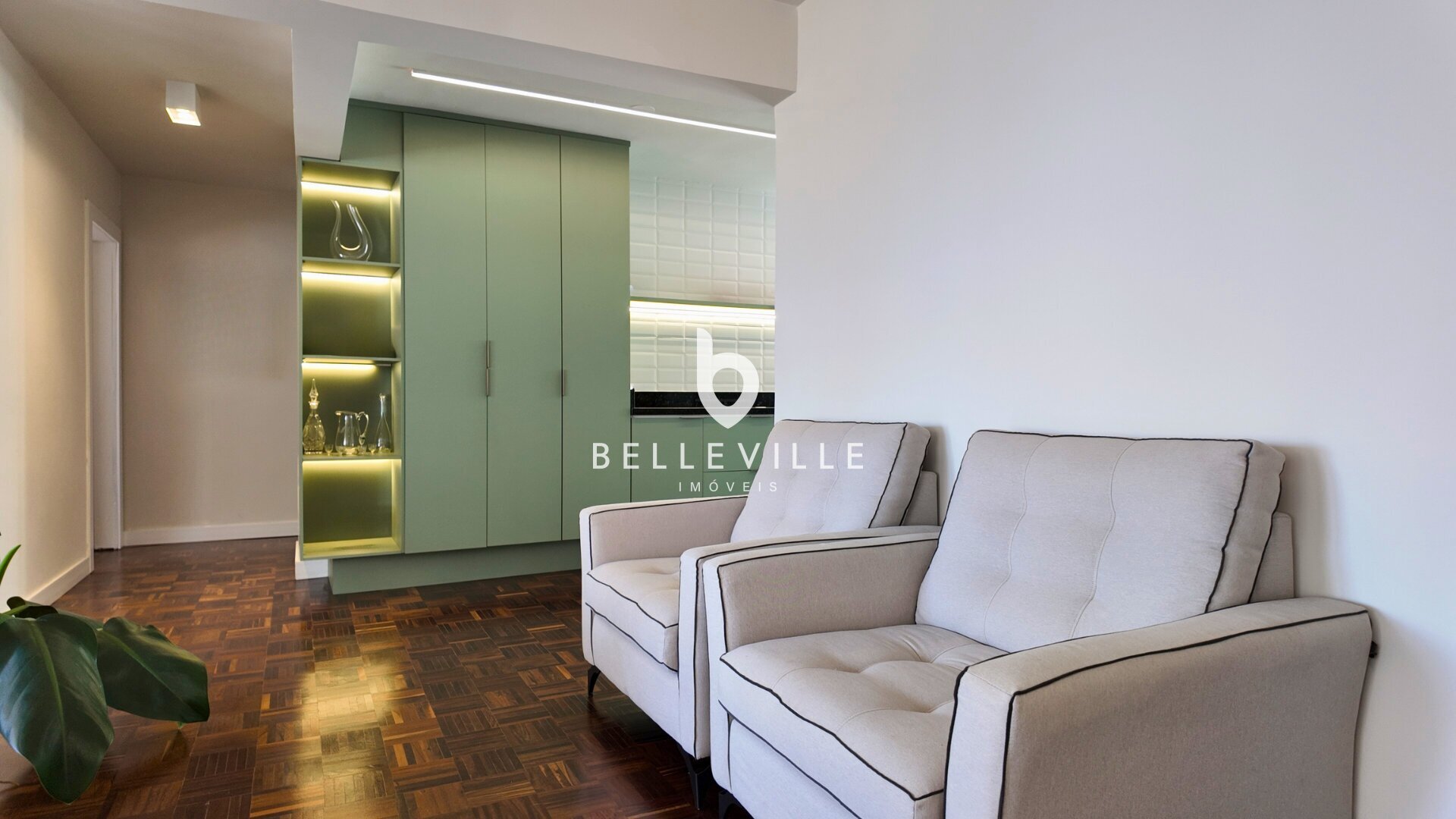 Com 2 suítes, 1 delas com closet e banheira, 3 banheiros e 1 vaga de garagem, o imóvel passou por uma reforma impecável, que valoriza acabamentos de alta qualidade e prioriza integração e conforto em todos os ambientes.