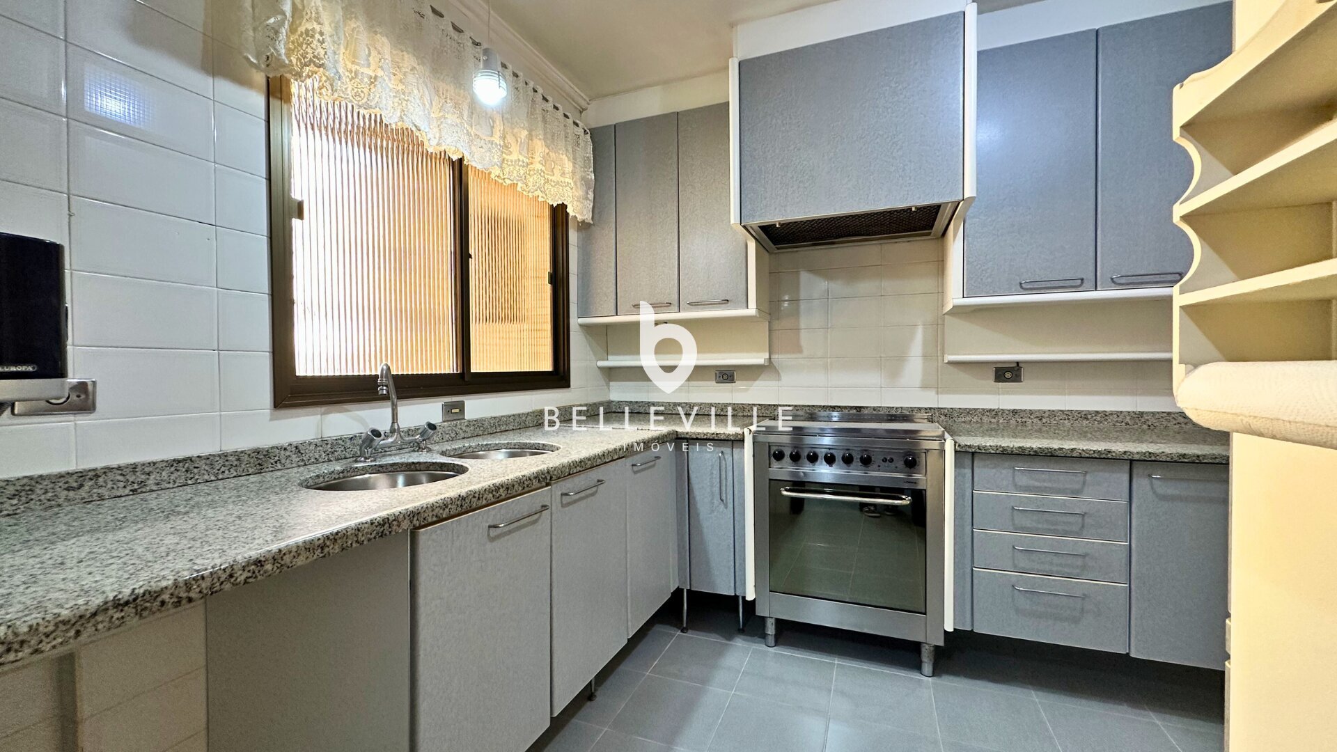 A cozinha com armários planejados assim como a área de serviço.