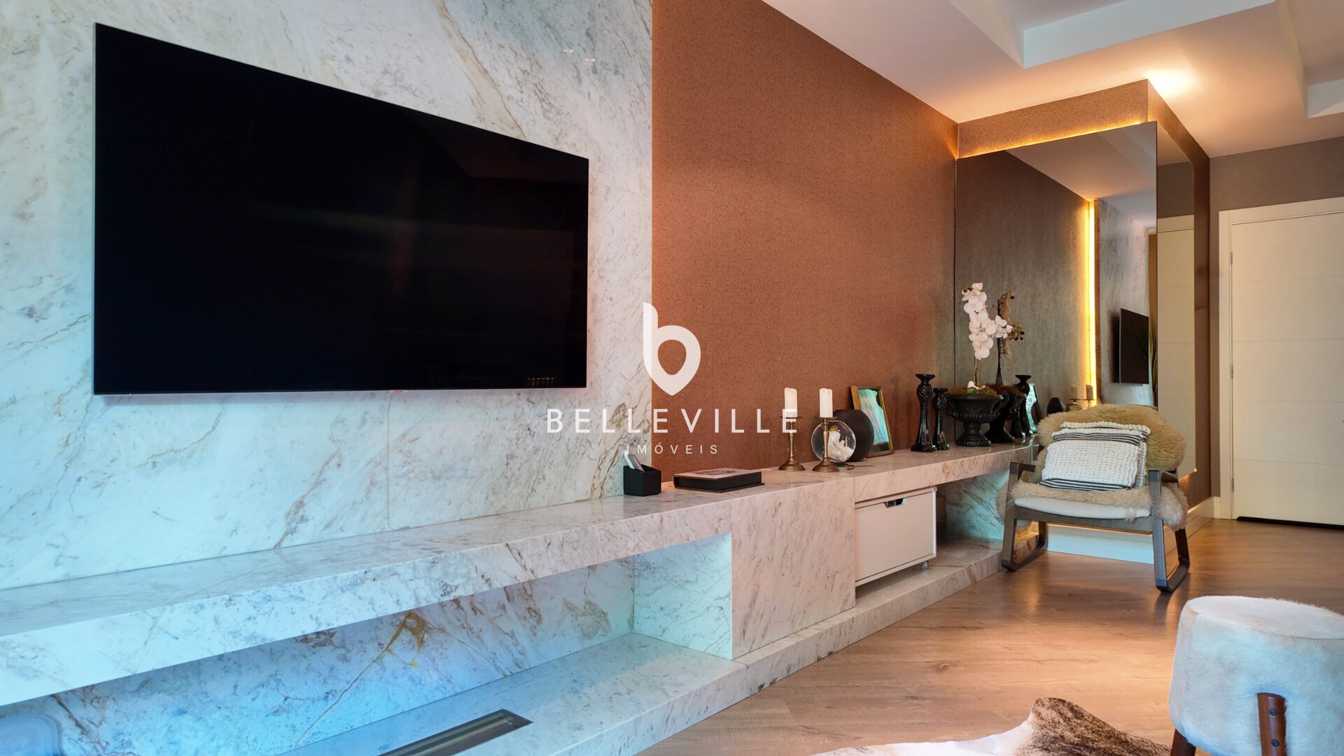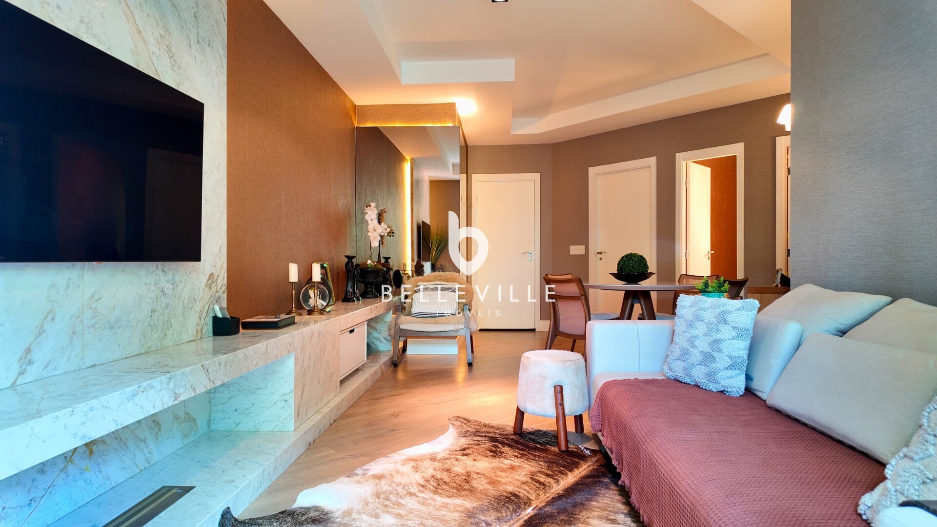 O conforto térmico é um dos grandes diferenciais. O piso aquecido percorre quase todo o apartamento, o ar-condicionado da suíte foi instalado de forma discreta, e a lareira ecológica complementa a sensação de aconchego. A sacada fechada amplia a área social e permite aproveitar o espaço em qualquer estação.