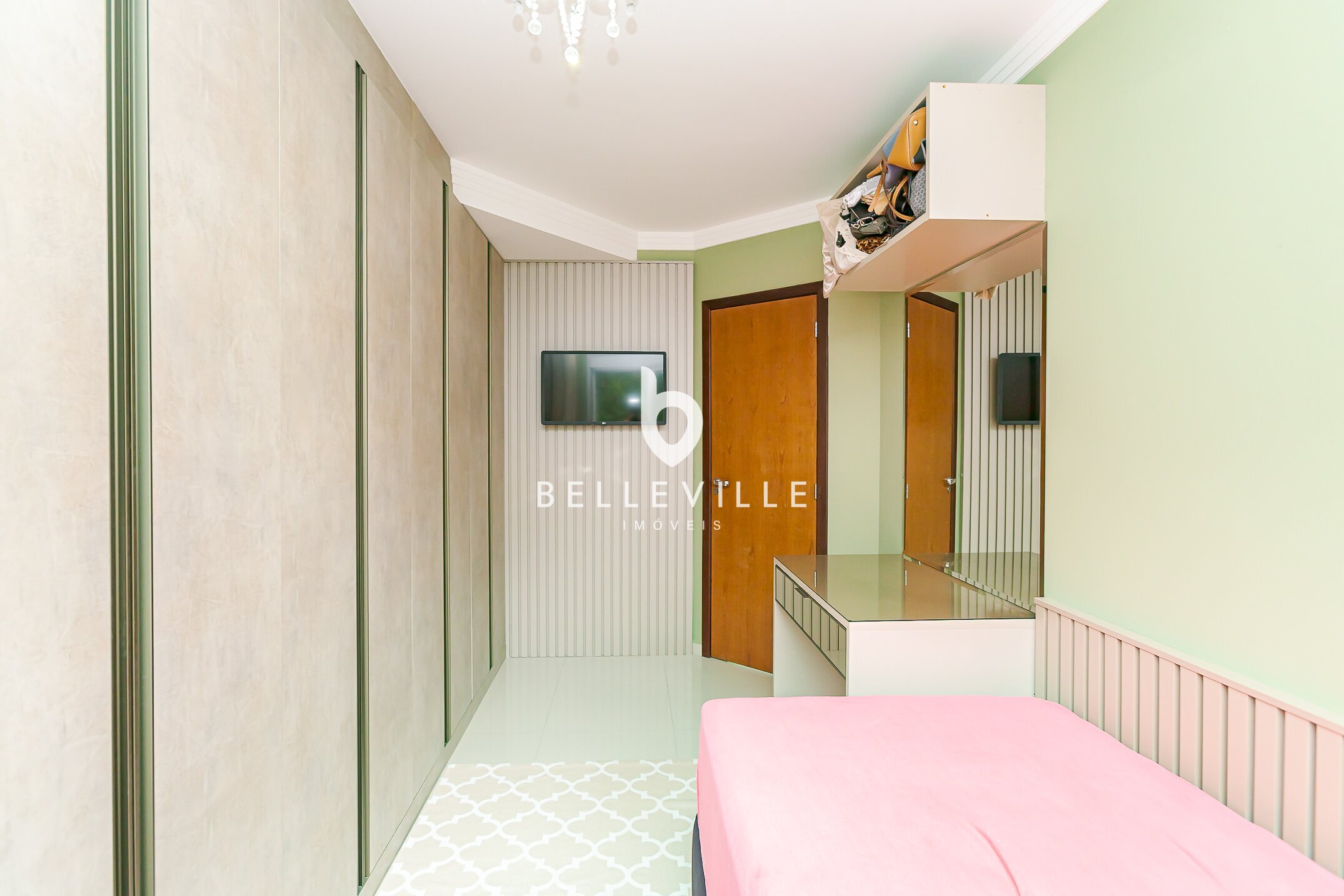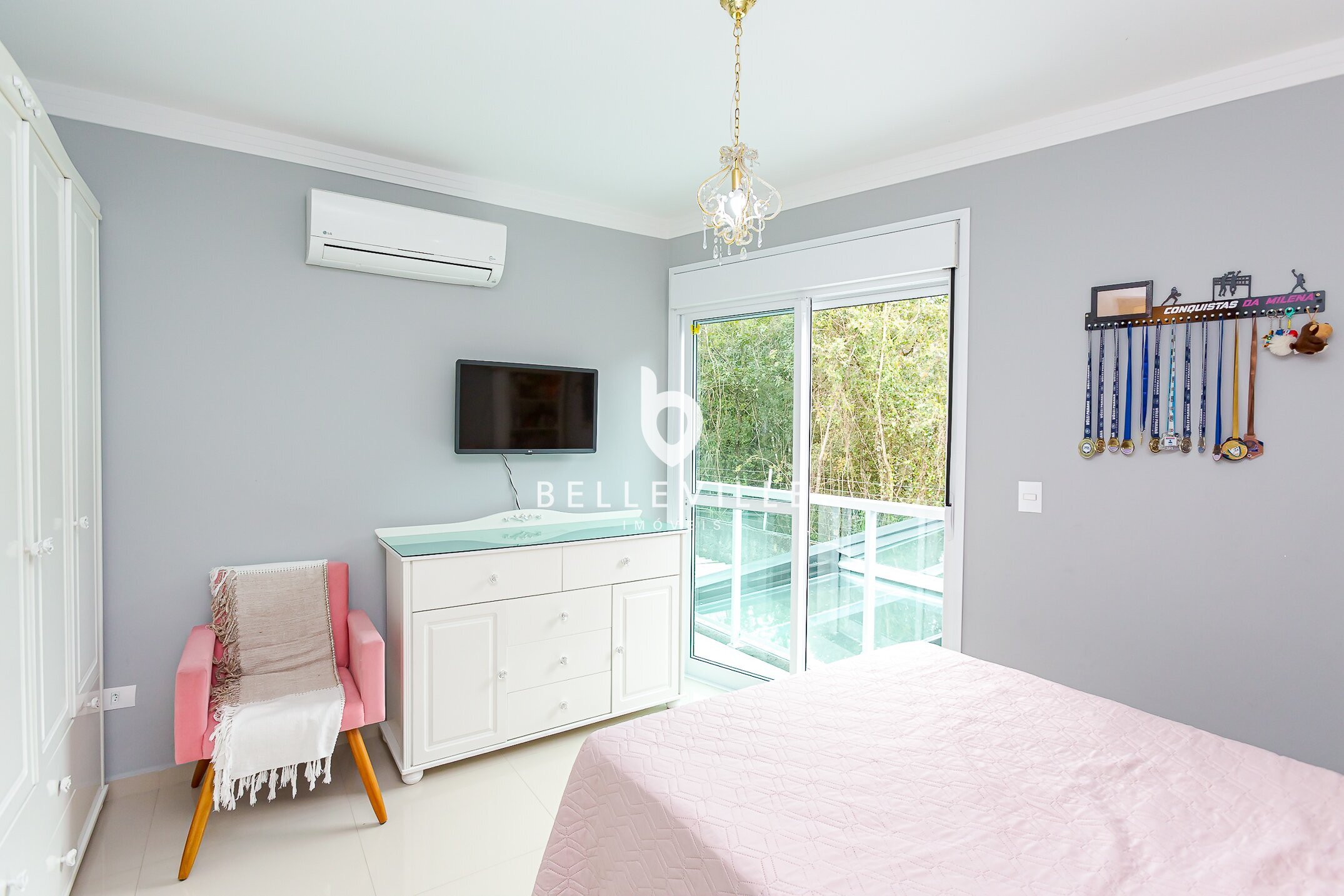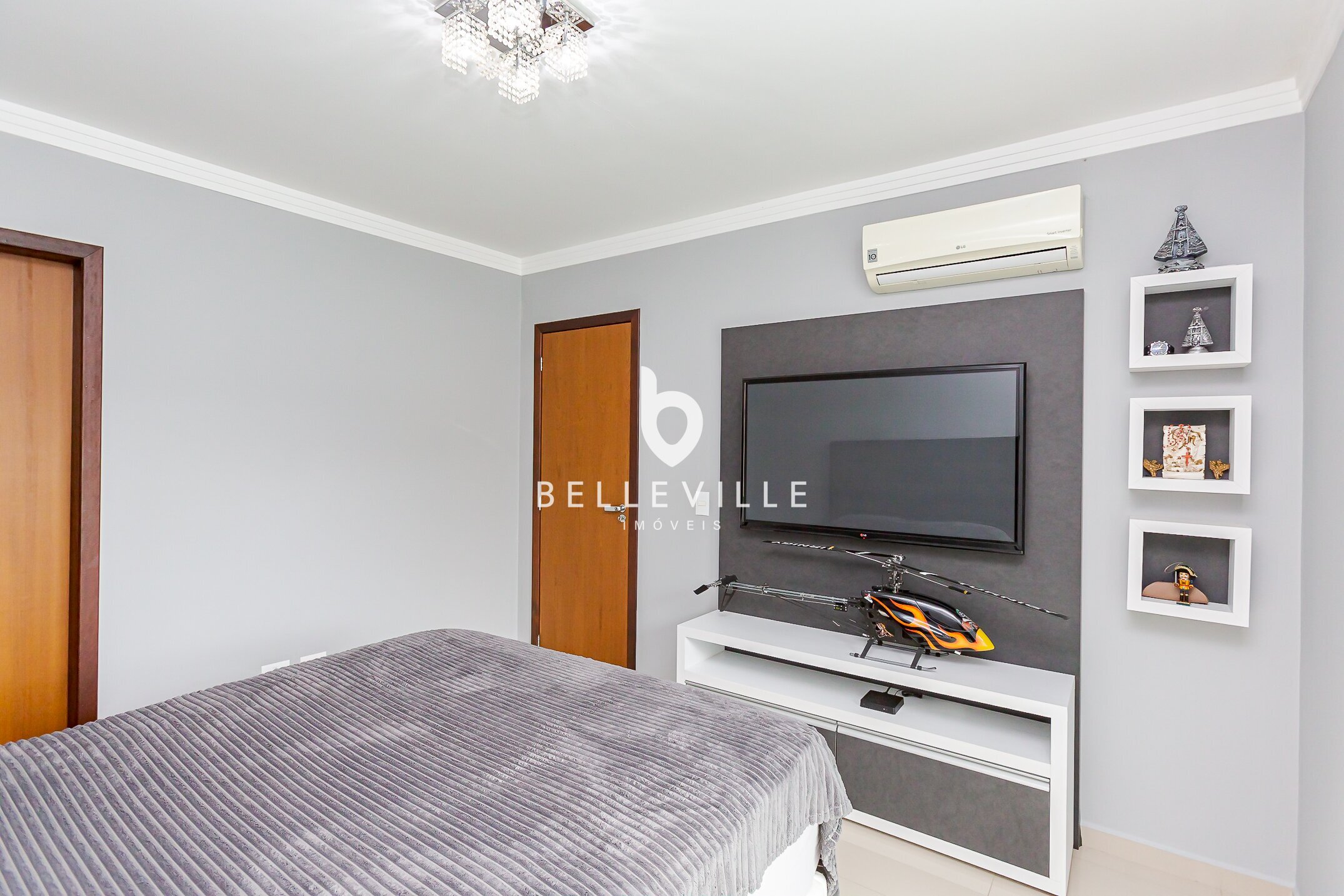 Suíte master com espaço generoso para cama king size e um ambiente aconchegante