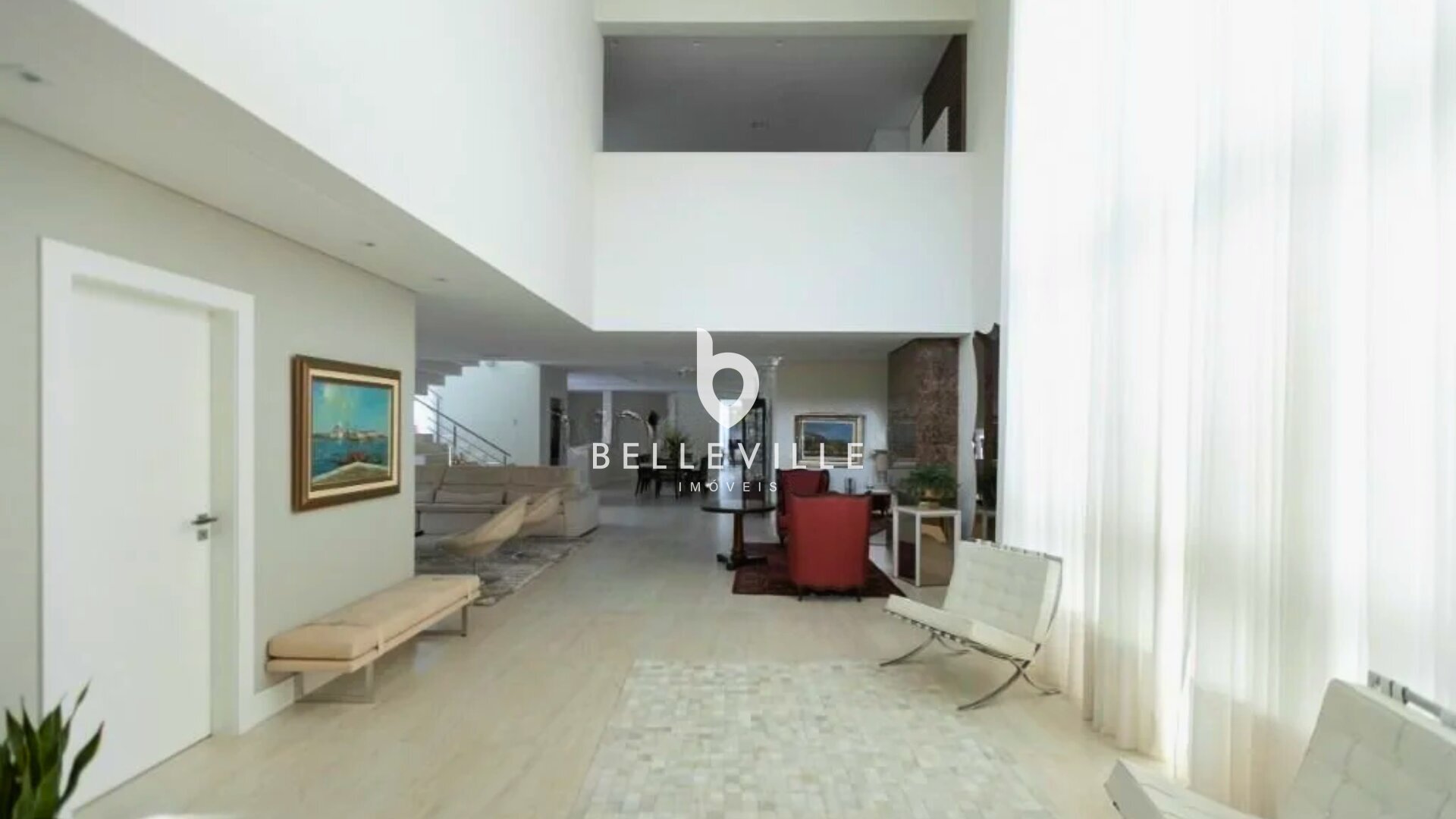 No primeiro pavimento, a casa impressiona logo na entrada com pé-direito de 7 metros, proporcionando amplitude e imponência. A área social conta com ampla sala para três ambientes, finamente decorada, com lareira e elevador, trazendo praticidade e sofisticação ao dia a dia.