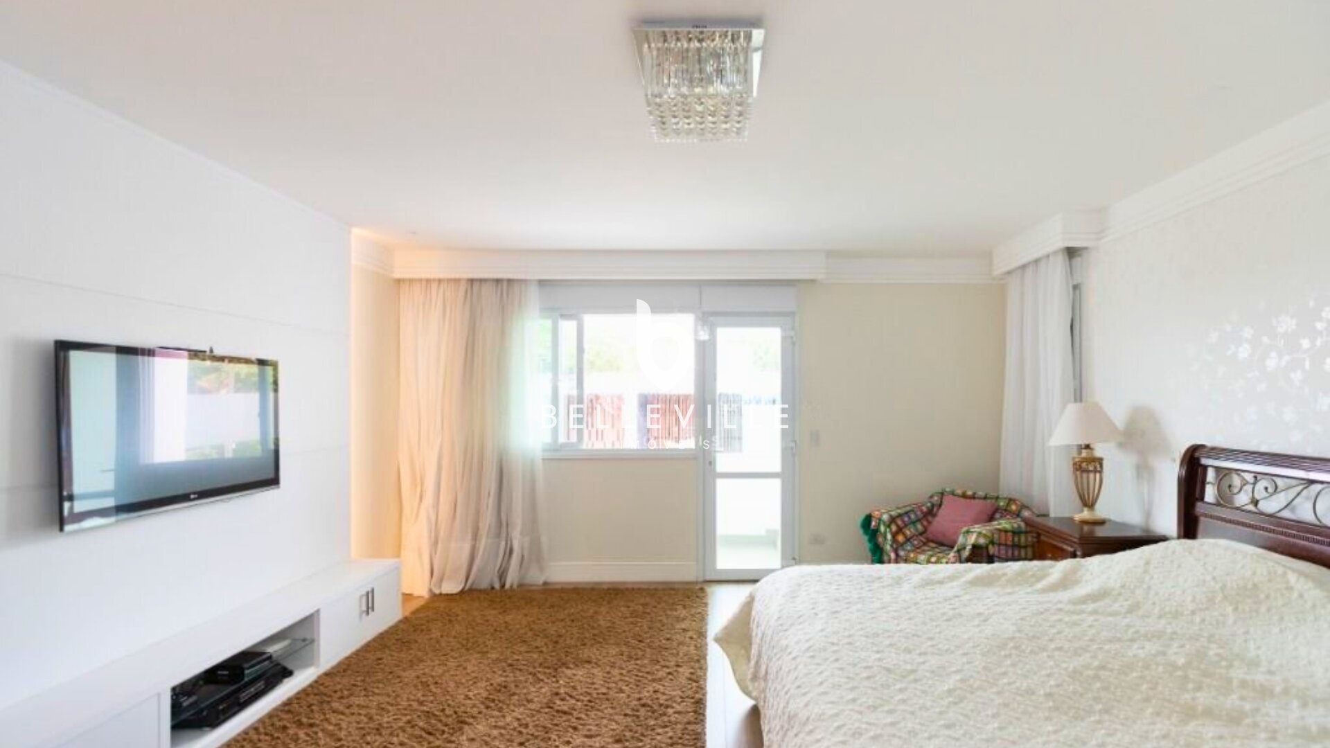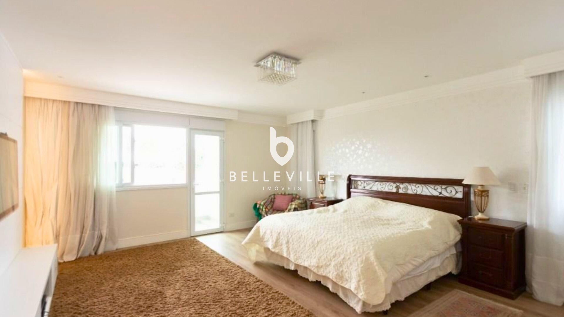 A suíte máster é um destaque à parte, com sacada privativa e banheiro com hidromassagem, ideal para relaxar com total privacidade.