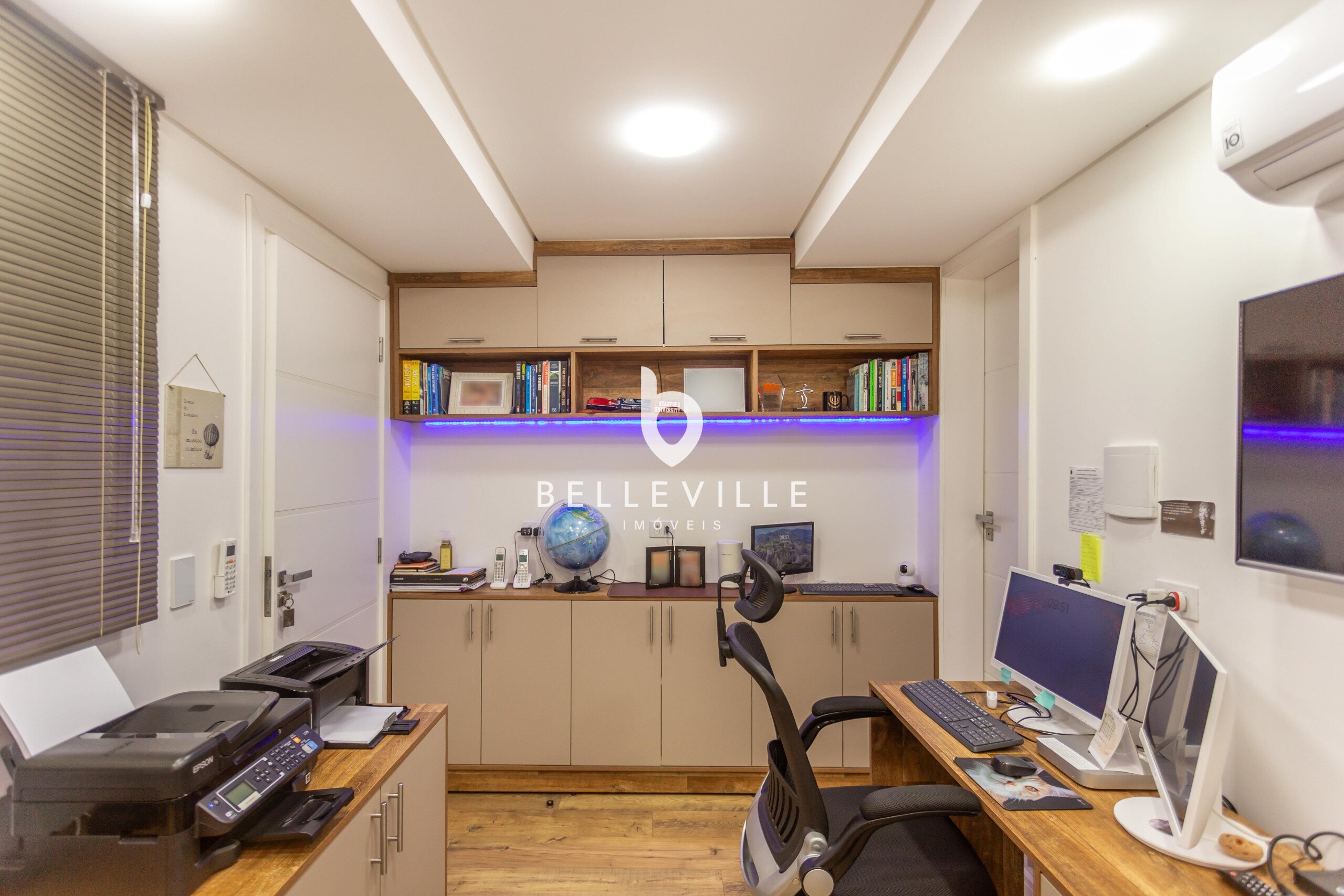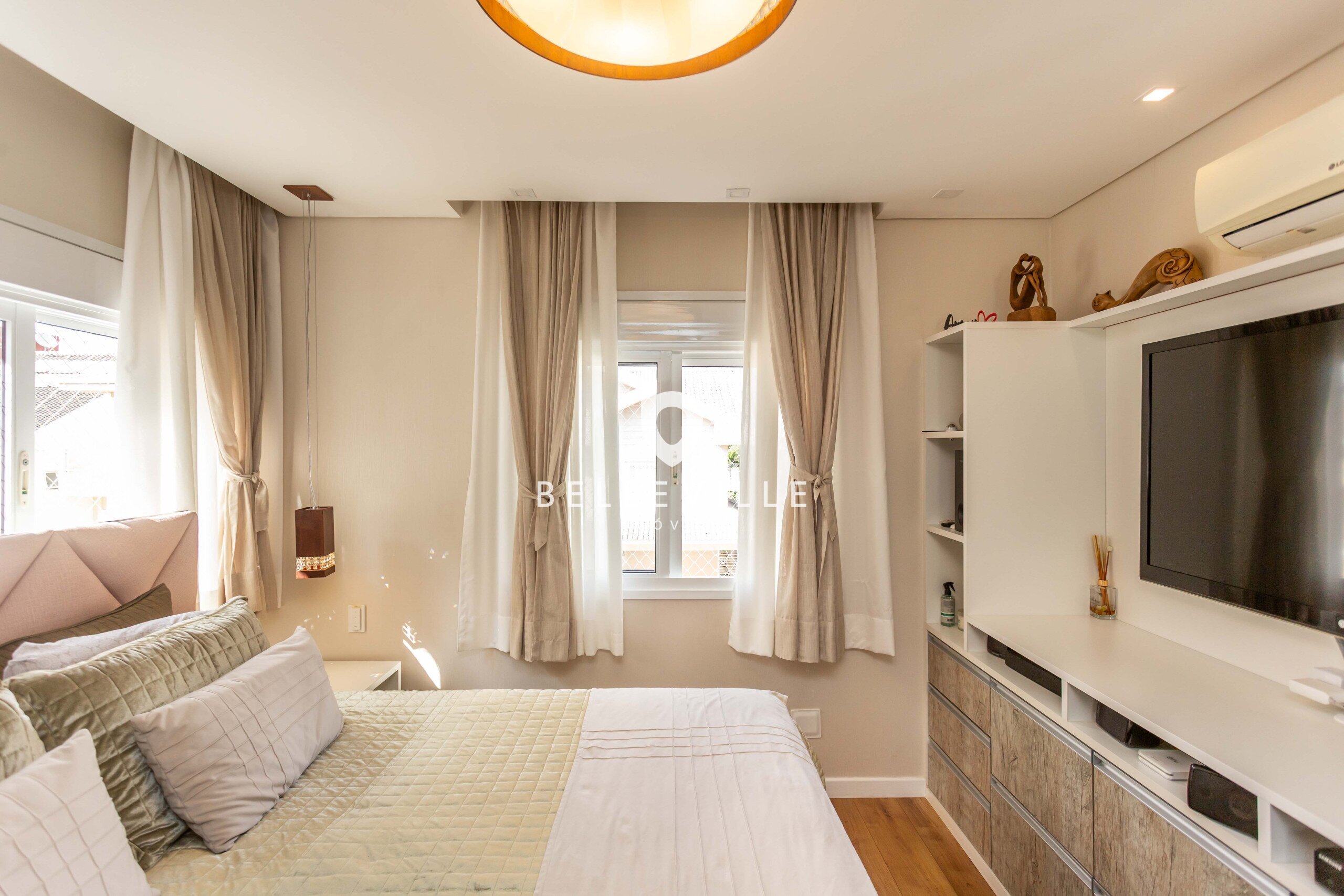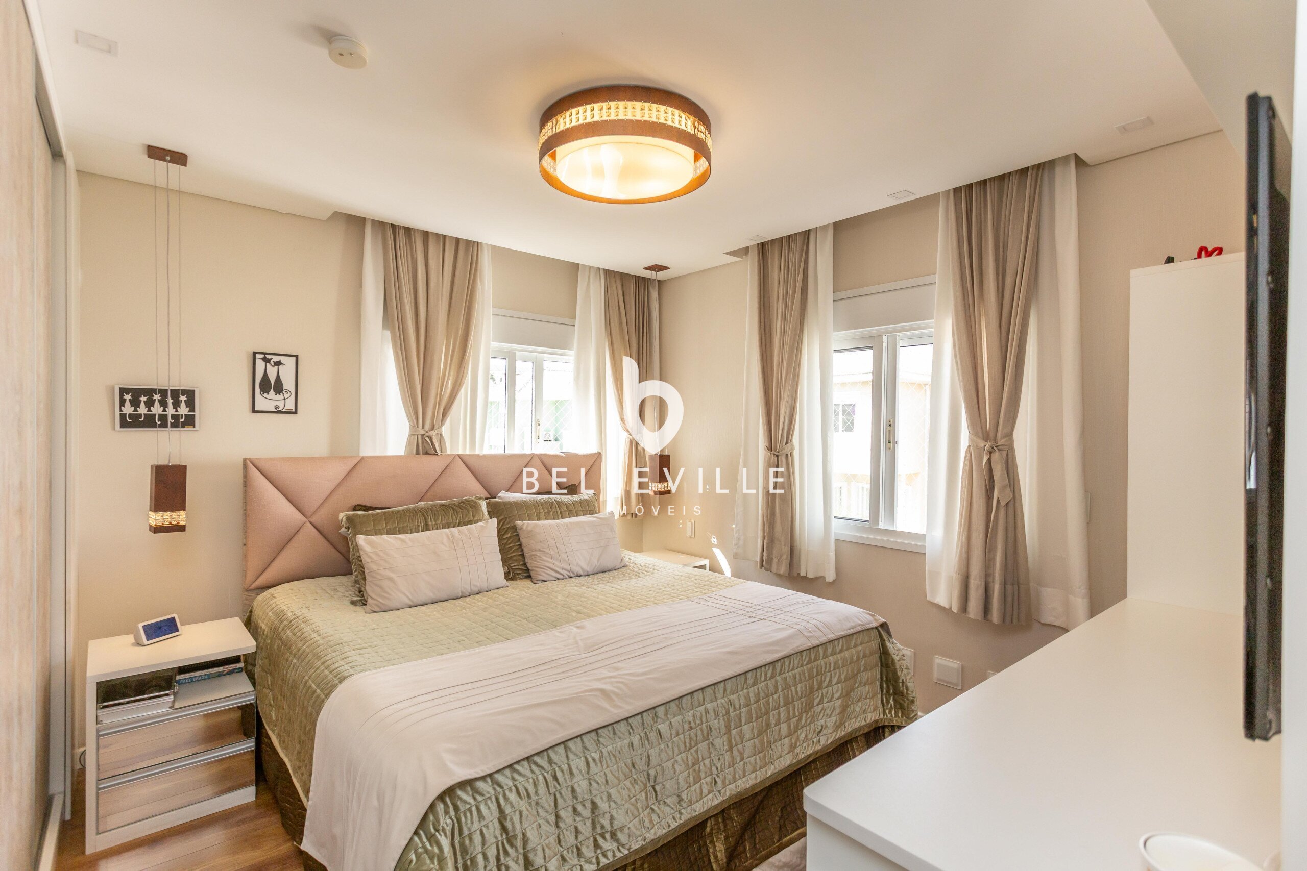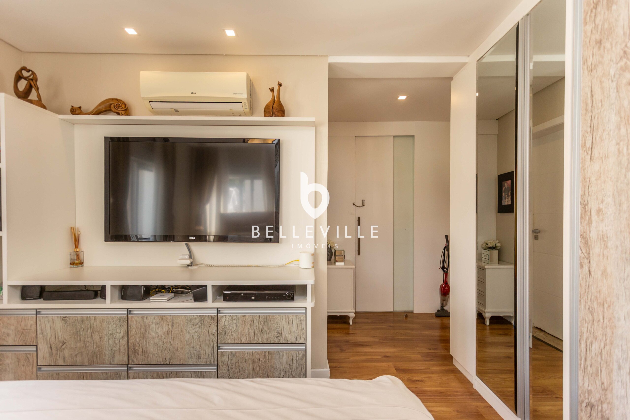 4 Dormitórios, sendo 2 suítes e 2 Dormitórios. A suíte master conta com closet e banheiro com cuba e chuveiros duplos. Todos com ar-condicionado e persianas elétricas, ricas em armários embutidos.
