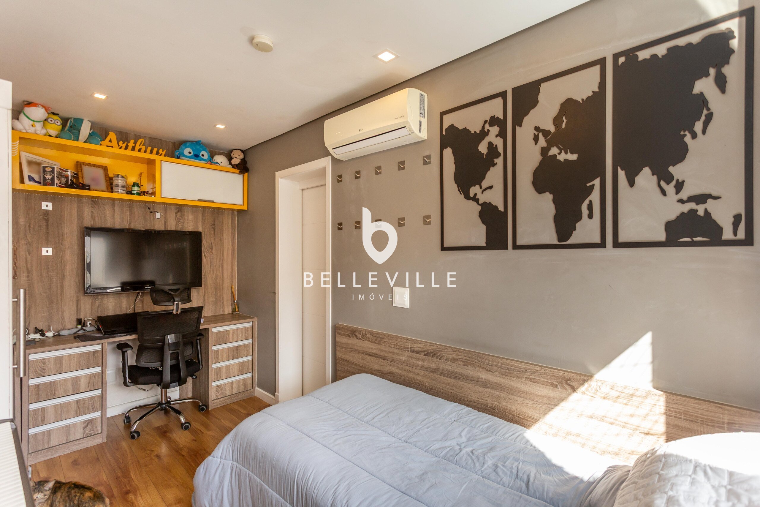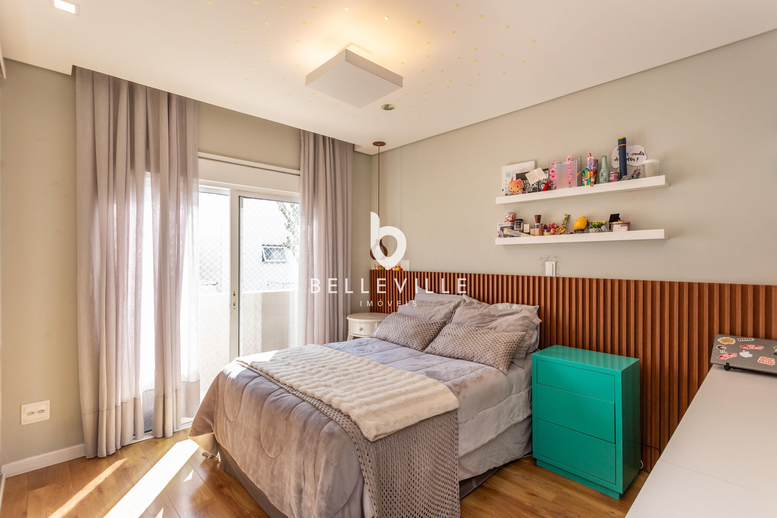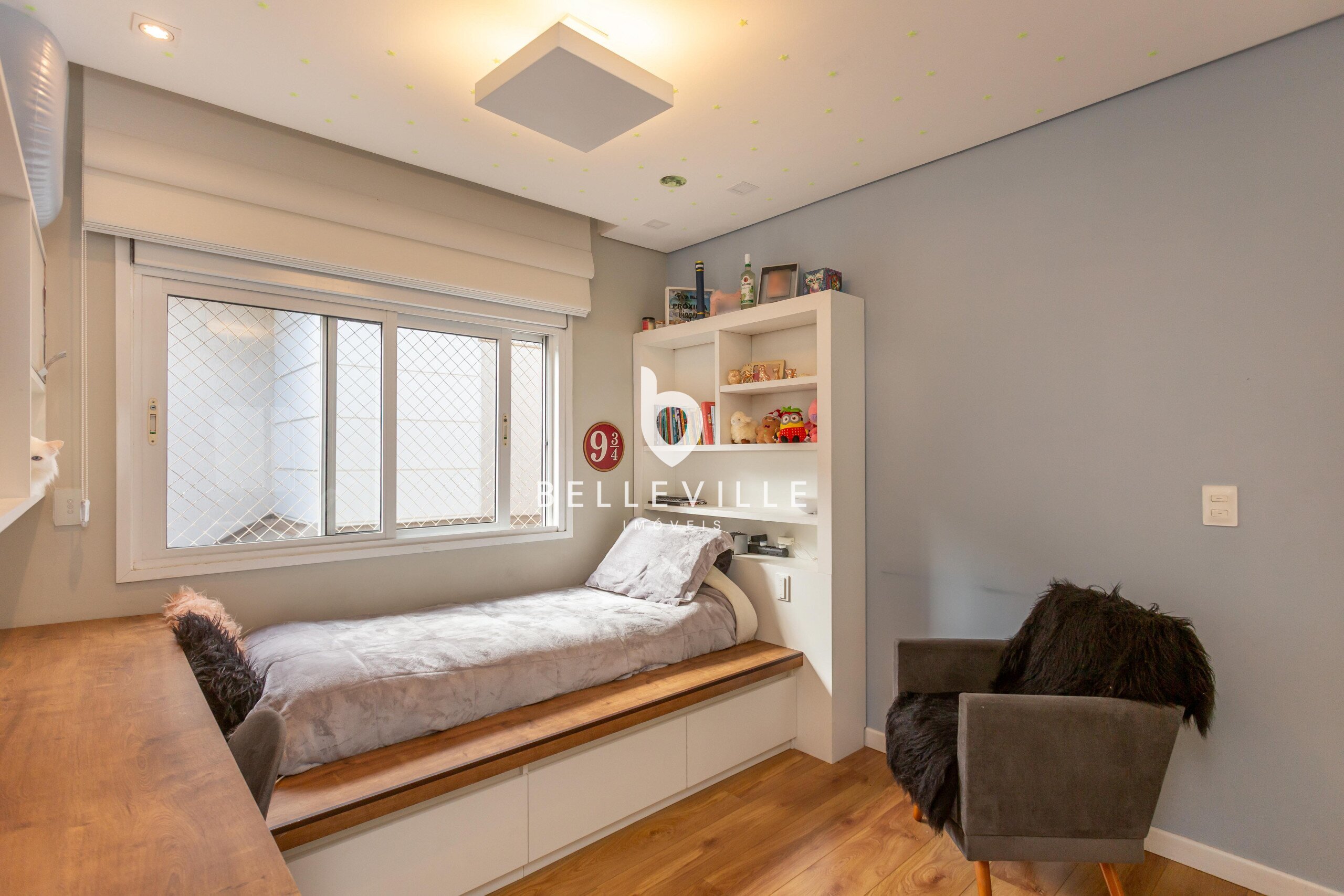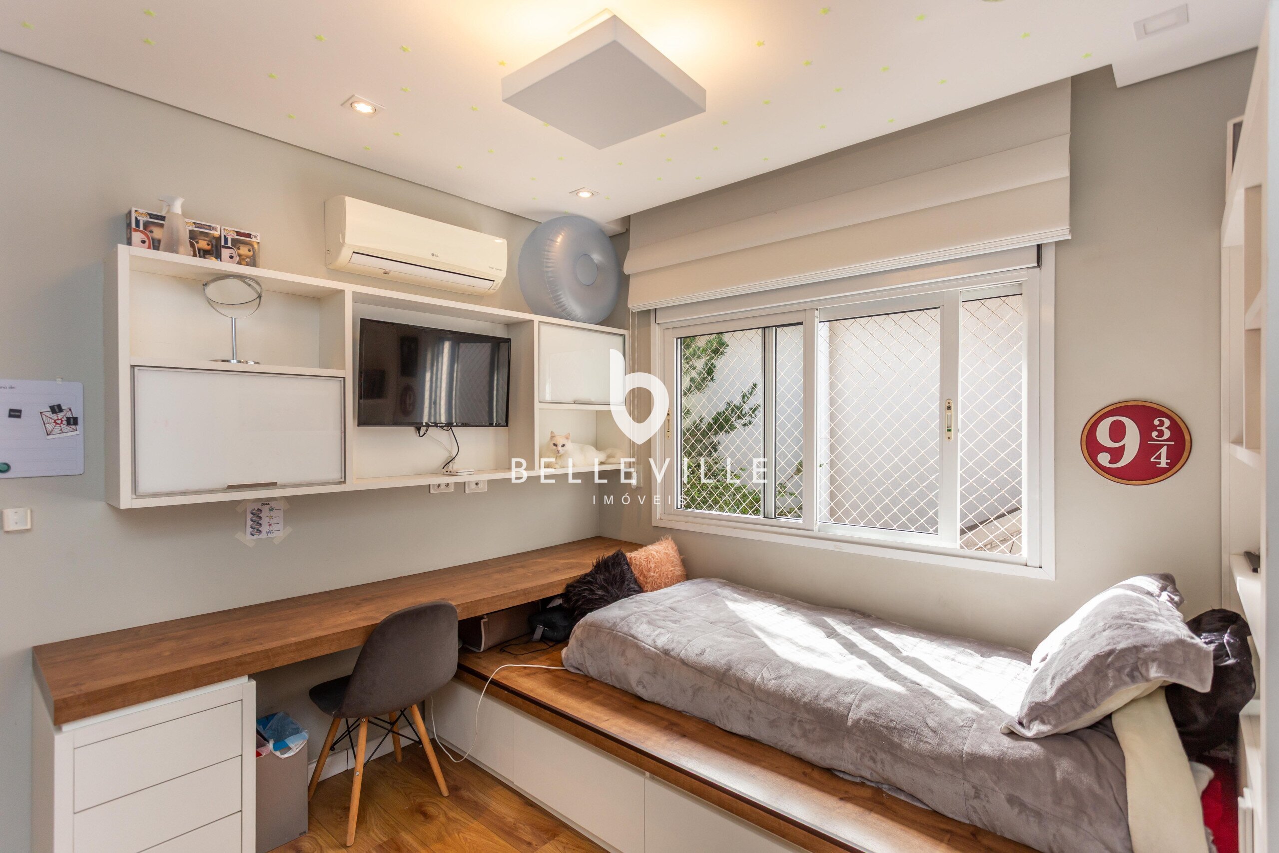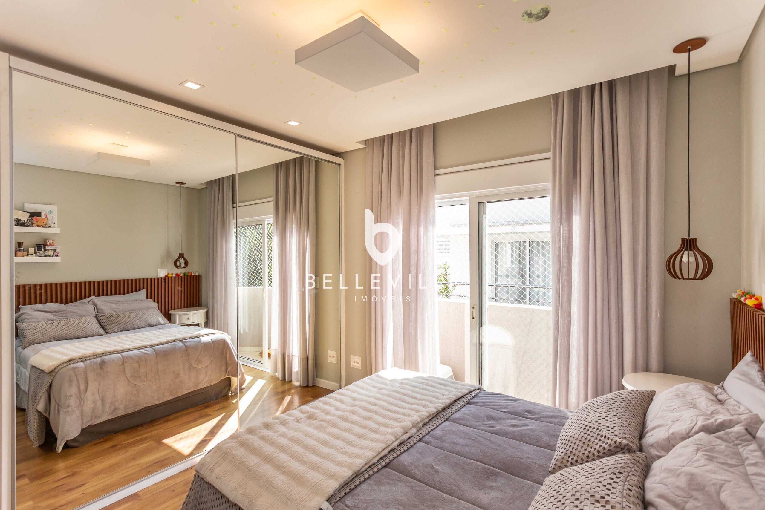4 Dormitórios, sendo 2 suítes e 2 Dormitórios. A suíte master conta com closet e banheiro com cuba e chuveiros duplos. Todos com ar-condicionado e persianas elétricas, ricas em armários embutidos.