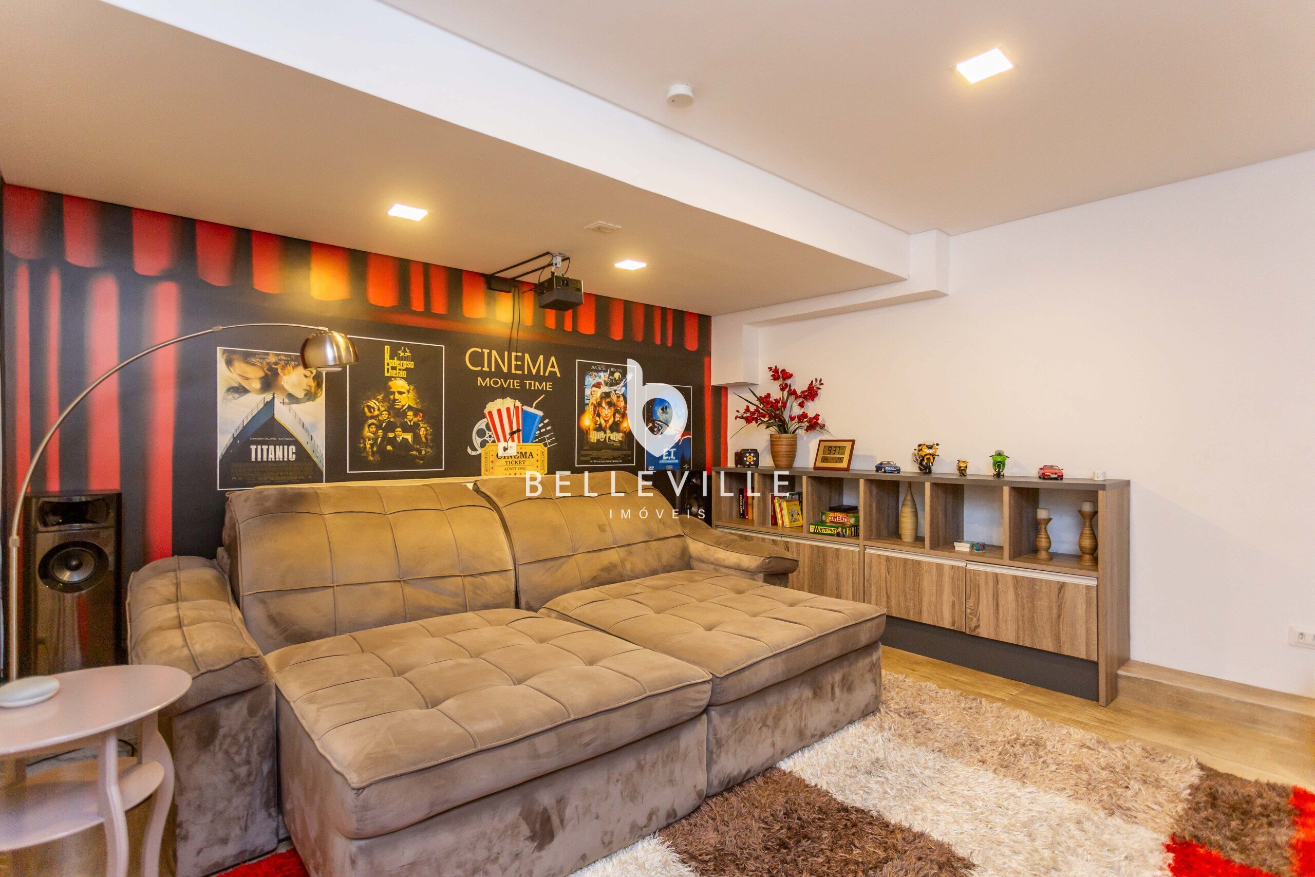 Home Theather amplo, com isolamento acústico. Escritório completo para duas posições, rico em armários. Sauna seca em madeira, com banheiro completo e Ofurô.