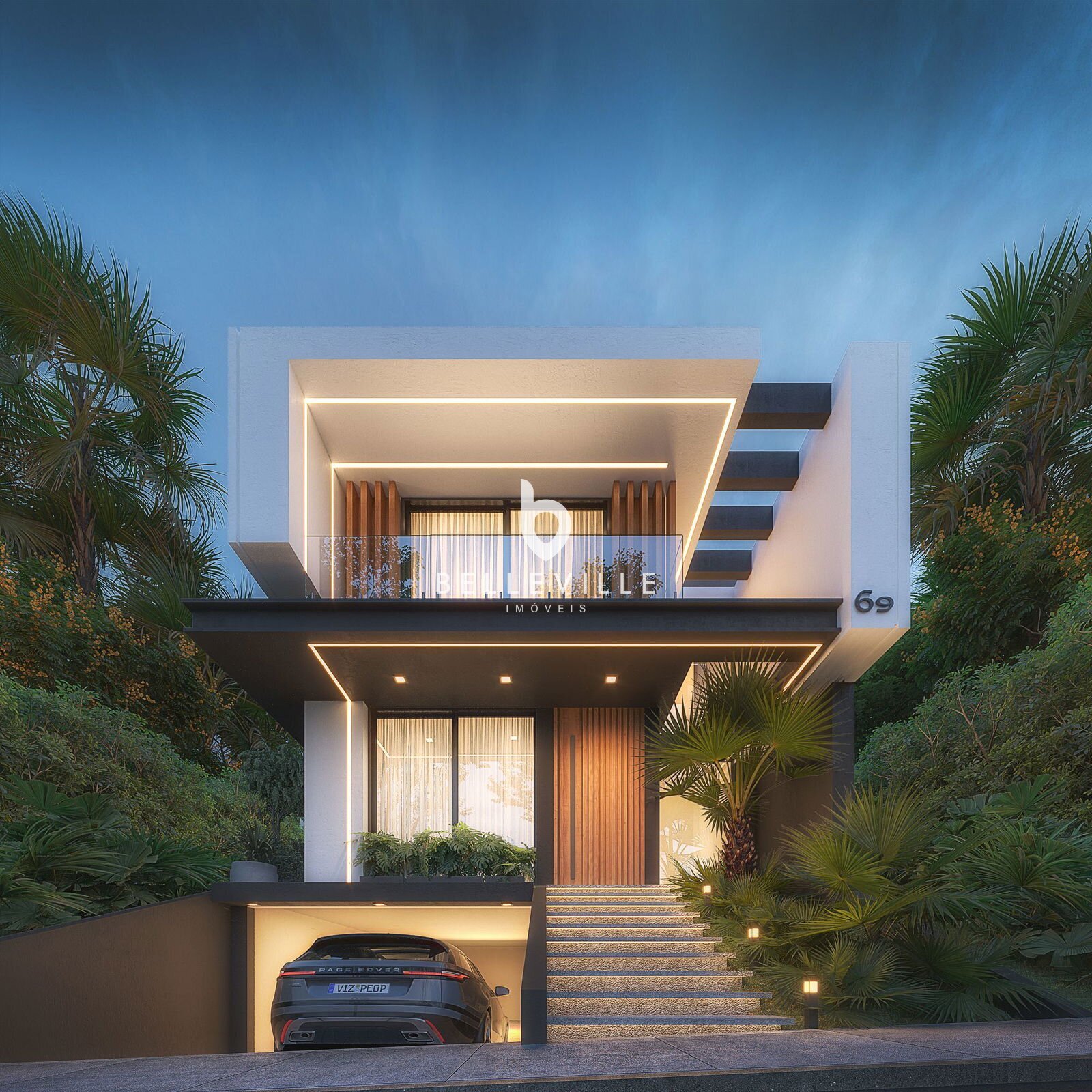 • 3 suítes amplas e confortáveis • Home office • Elevador com 3 paradas (subsolo, térreo e superior) • Garagem para até 4 veículos • Sistema de ar-condicionado central • Persianas automatizadas • Infraestrutura completa para automação residencial (som, câmeras, rede, home theater) • Preparação para energia solar • Ponto de recarga para carro elétrico • Projeto de iluminação planejado • Acabamentos de alto padrão