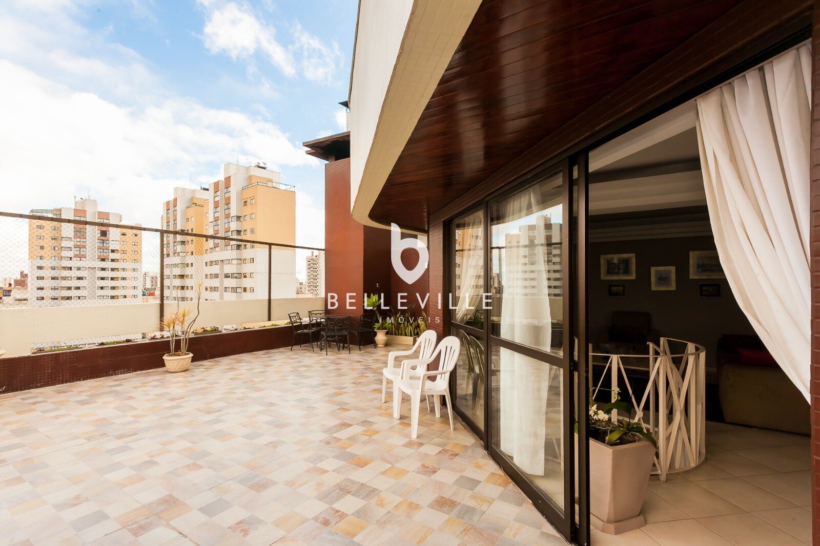 São 302m² de área privativa, distribuídos em 221m² de área coberta e 81m² de terraço descoberto.