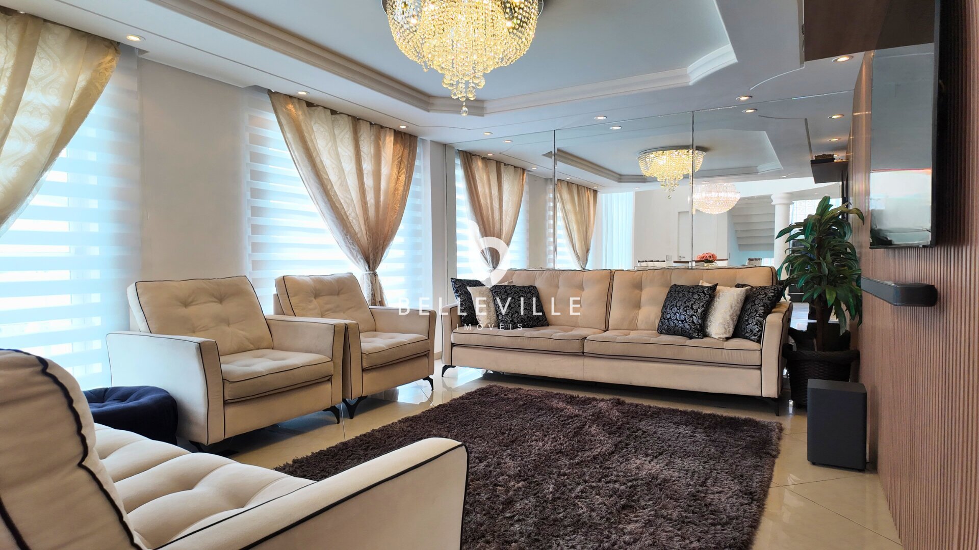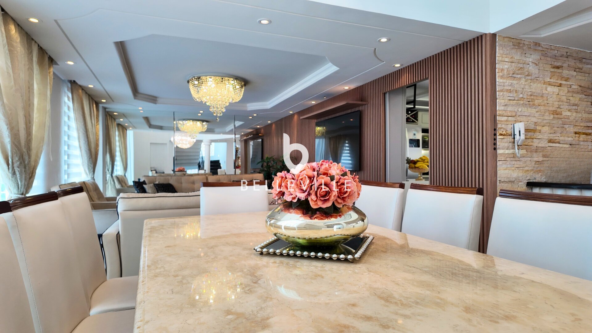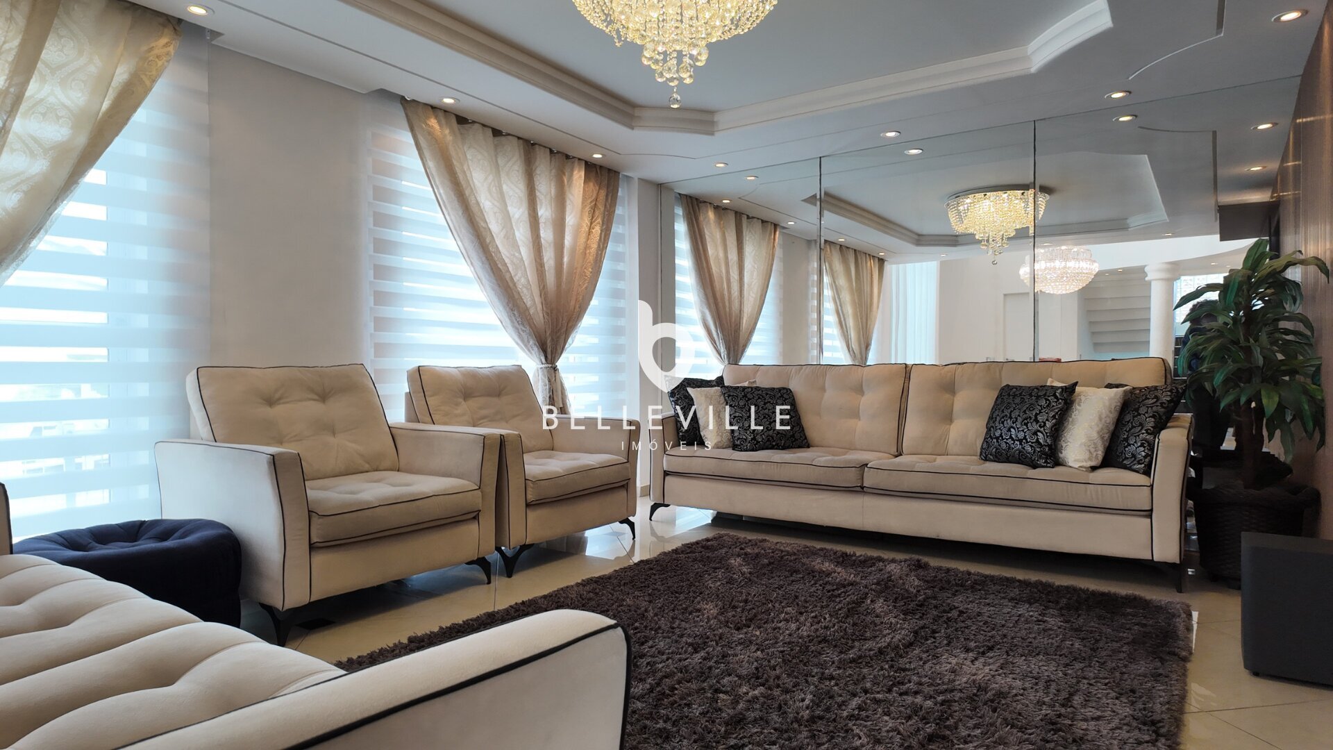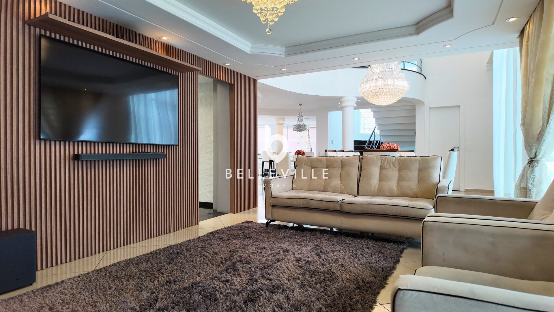 • Living imponente, com grandes aberturas que favorecem a luz natural e criam uma atmosfera sofisticada e acolhedora.