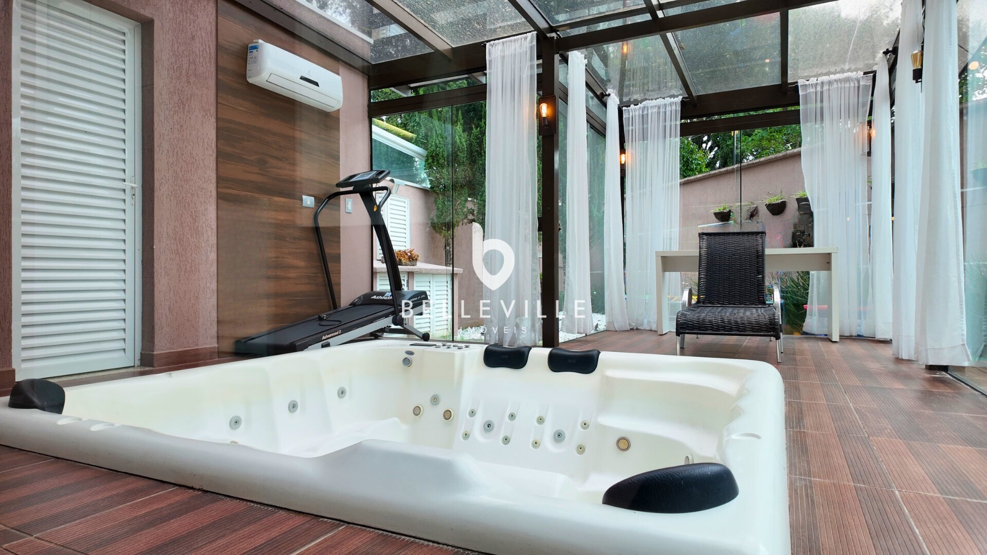 • Área externa deslumbrante, com hidromassagem coberta para até 12 pessoas e um jardim cuidadosamente concebido, garantindo privacidade e charme incomparáveis.