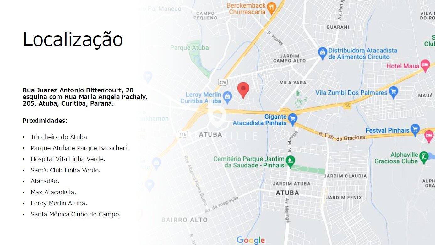 Localização: Juarez Antonio Bittencourt, 20 - Santa Cândida - Curitiba/PR